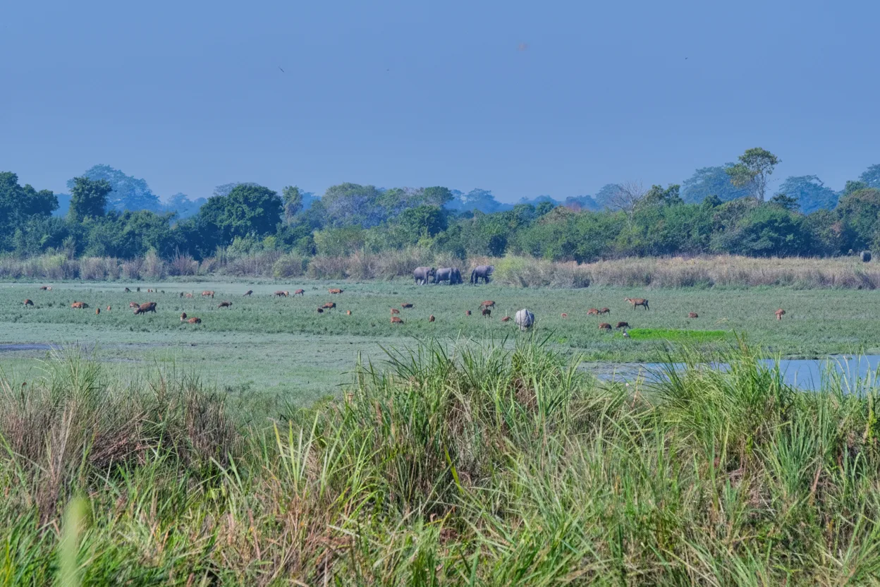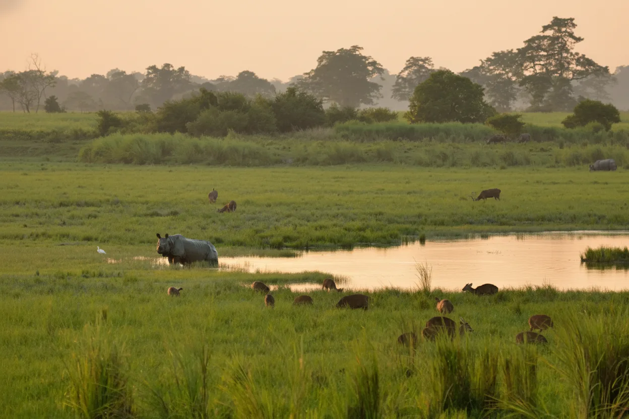 • 🦏 Spot one-horned rhinoceros, 🐘 elephants, and deer 🦌