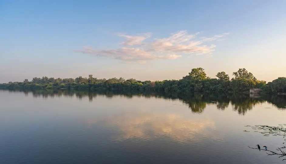 Keetham Lake, also known as Sur Sarovar Bird Sanctuary, is a peaceful freshwater lake