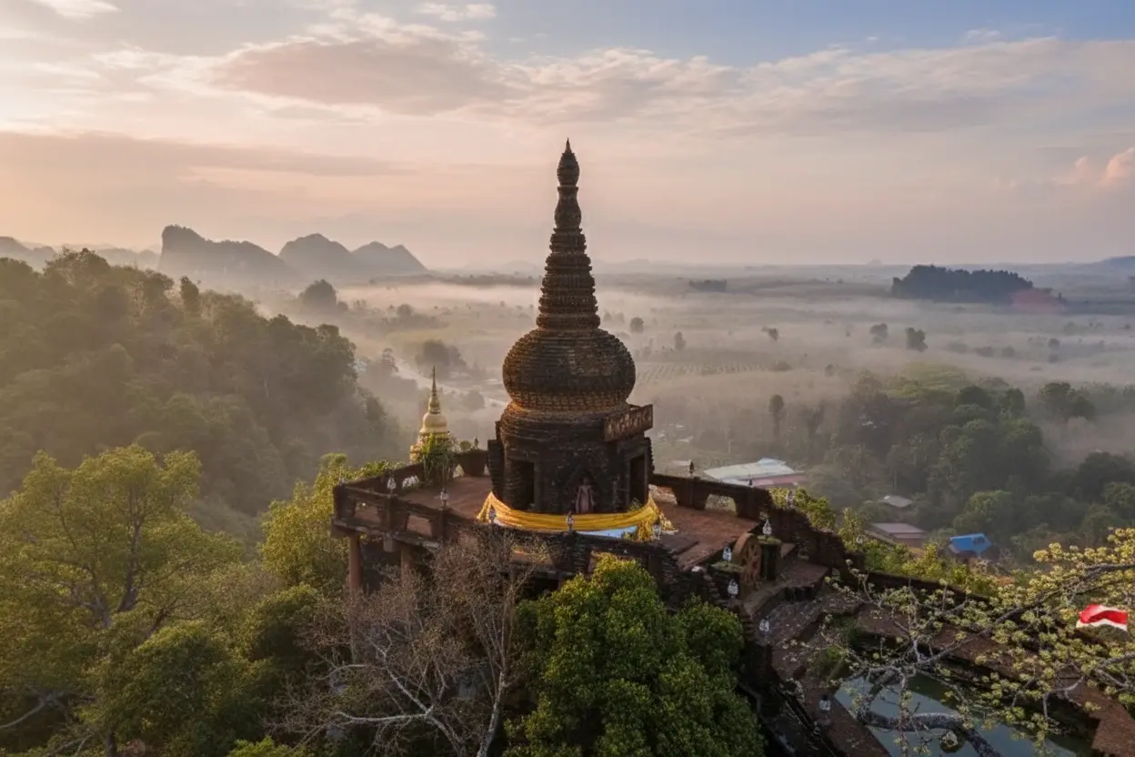 • 6:00 AM – Depart 🚗 Surat Thani 🧭 and arrive 🛕 for sunrise 🌅 at Khao Na Nai Luang 🧡💨