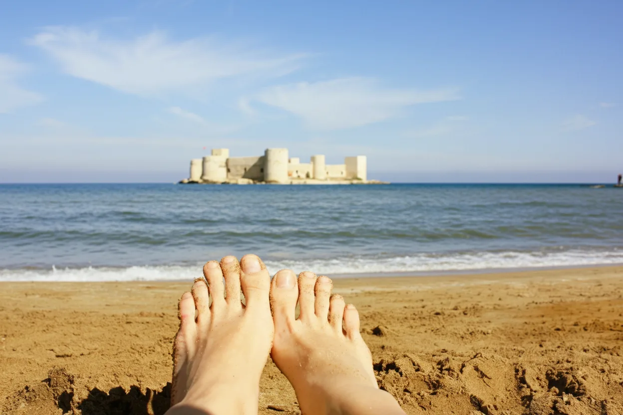 • ⛱️ 10:00 AM – Arrive at the beautiful Kizkalesi Beach 🐚 📍