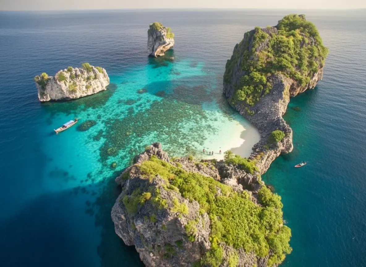 • From Krabi Town 🏘️: 2.5 hours ⏱️ by car 🚗 and ferry 🚢💨