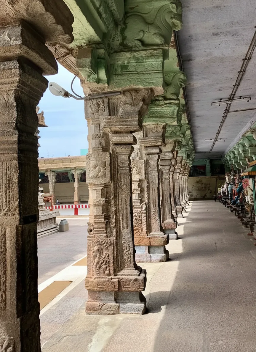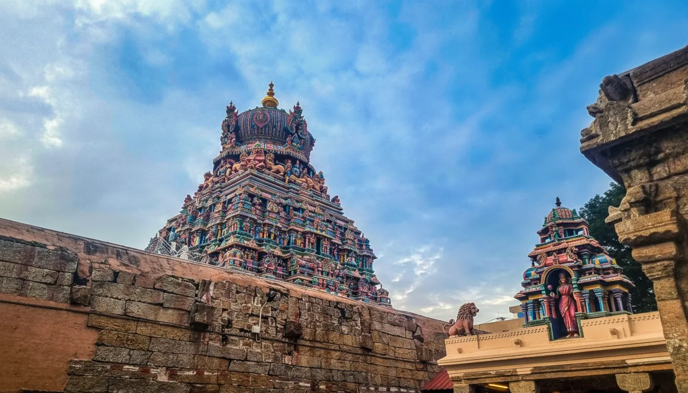• 🎨 Admire the colorful 125-foot Rajagopuram and ancient wall paintings 🖼️
