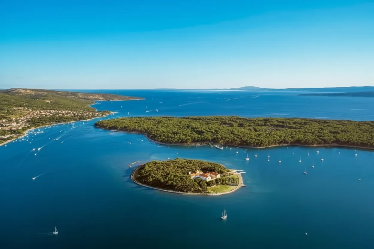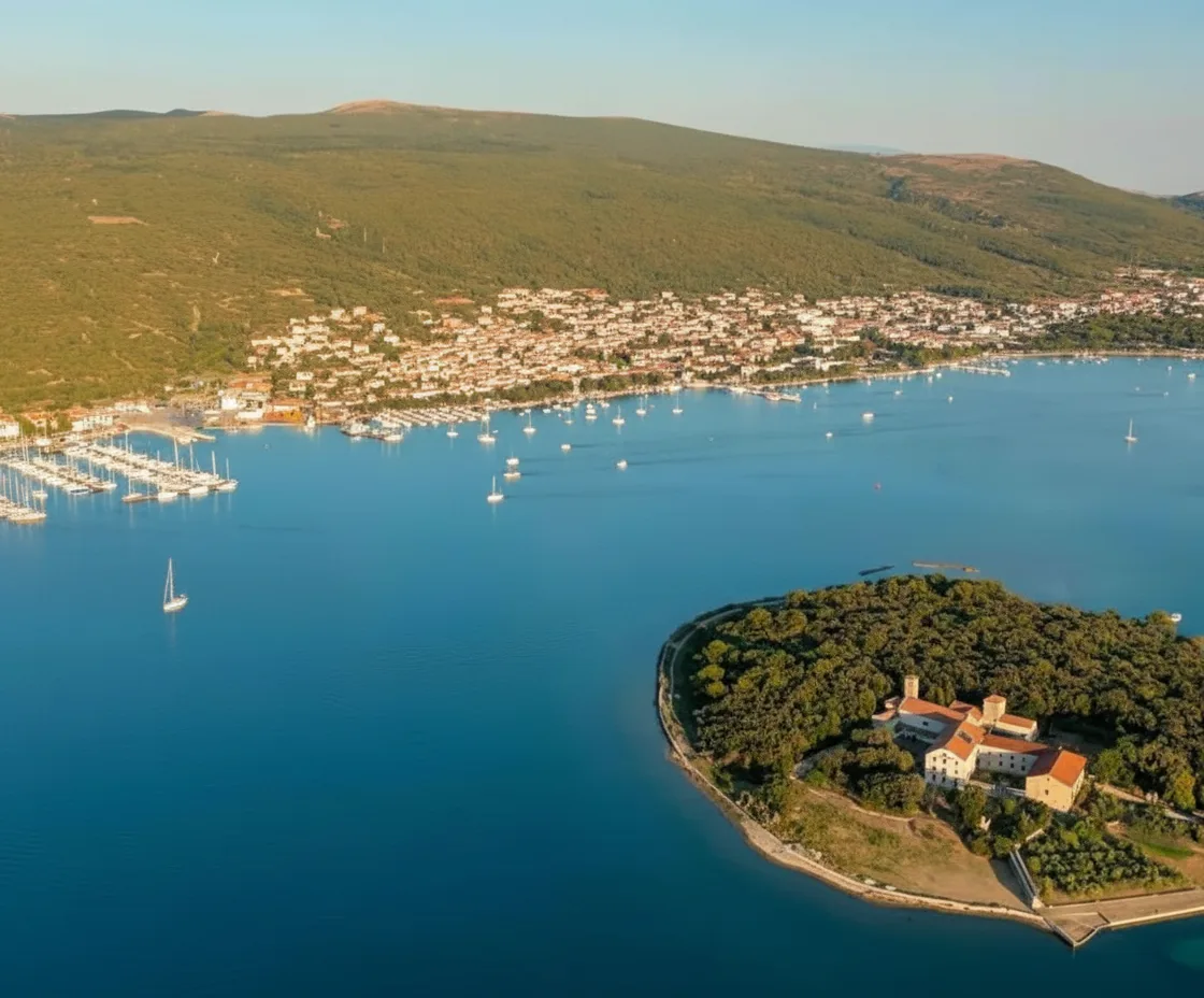 - 🚗 Drive about 10 minutes from Krk Town to Punat and continue via 🚤 boat transfer to the island ✨