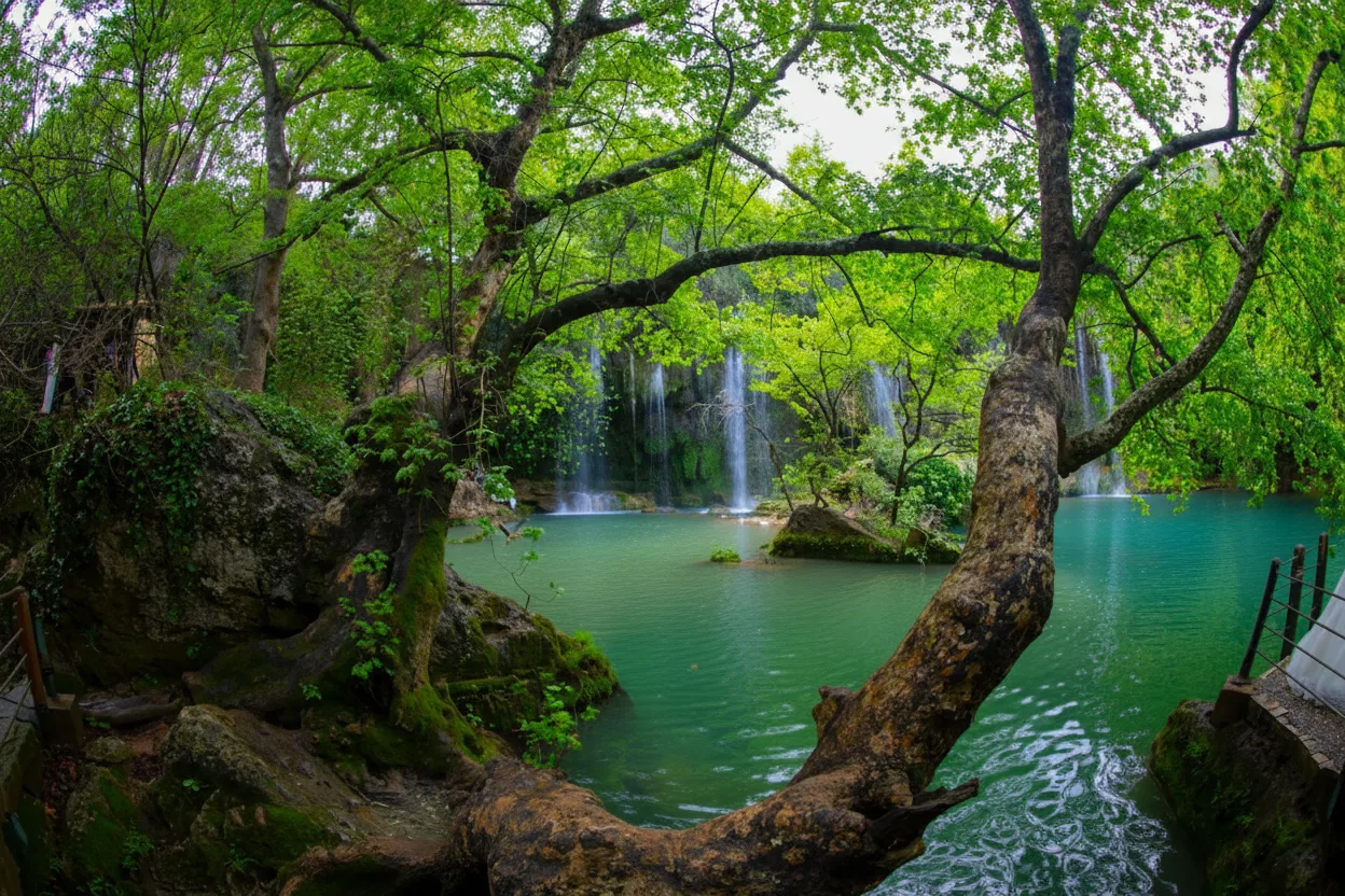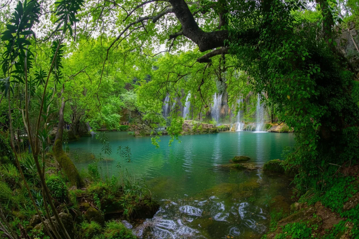 Kurşunlu Waterfall Nature Park is a peaceful natural attraction located near Antalya. Surrounded by lush forest, walking trails, and small pools, the waterfall offers a relaxing escape from the city and is ideal for nature lovers and photographers.