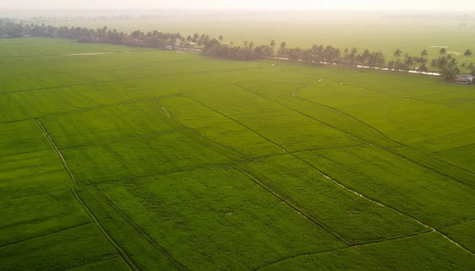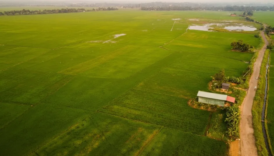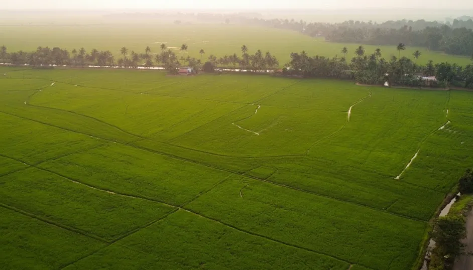 • 🌾 View vast paddy fields and irrigation 🚜 canals 🌊