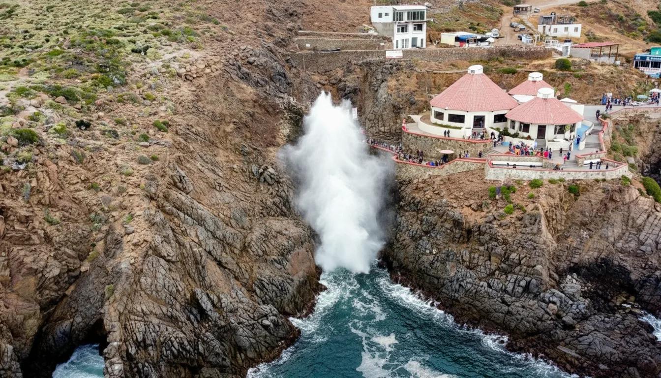 La Bufadora is a natural marine geyser located on the rugged Pacific coastline near Ensenada, Baja California, Mexico. This unique geological attraction is created when ocean waves push water and air through a sea cave, sending powerful bursts of spray high into the air. It is one of the most famous natural landmarks in the region and a popular stop for travelers exploring the Baja coast. For visitors, La Bufadora offers dramatic ocean views, fresh sea air, and an impressive display of nature’s force.
