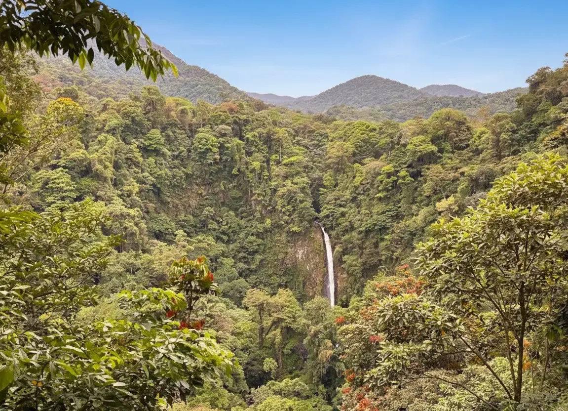 La Fortuna Waterfall, located near the base of Arenal Volcano in northern Costa Rica, is one of the most breathtaking natural wonders in the region. This stunning 70-meter waterfall cascades into a clear emerald pool surrounded by tropical rainforest. Visitors can hike down to the base for swimming, photography, and a peaceful nature experience.