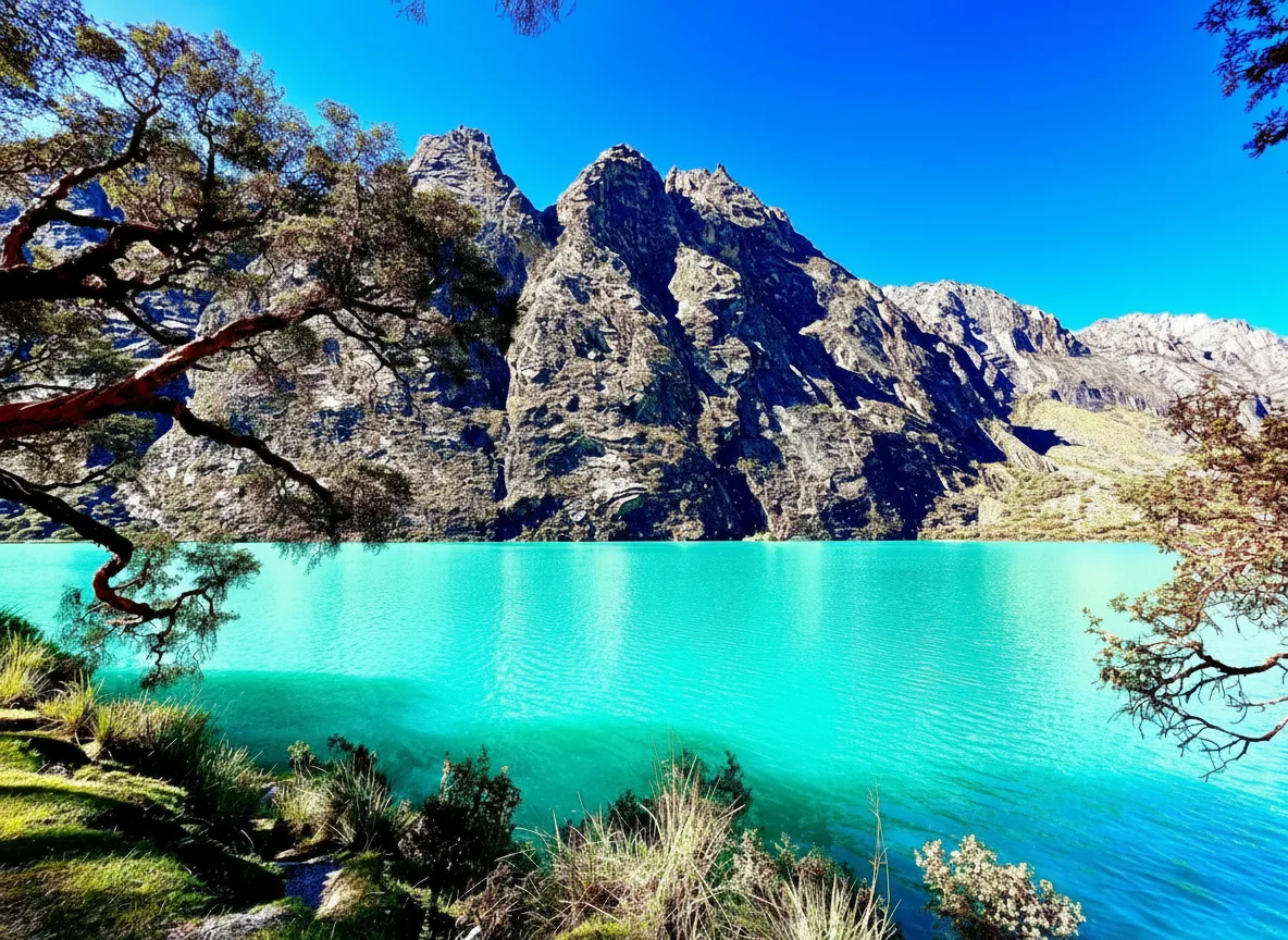 freshwater lagoon is known for its unique shades of blue, ranging from light turquoise to