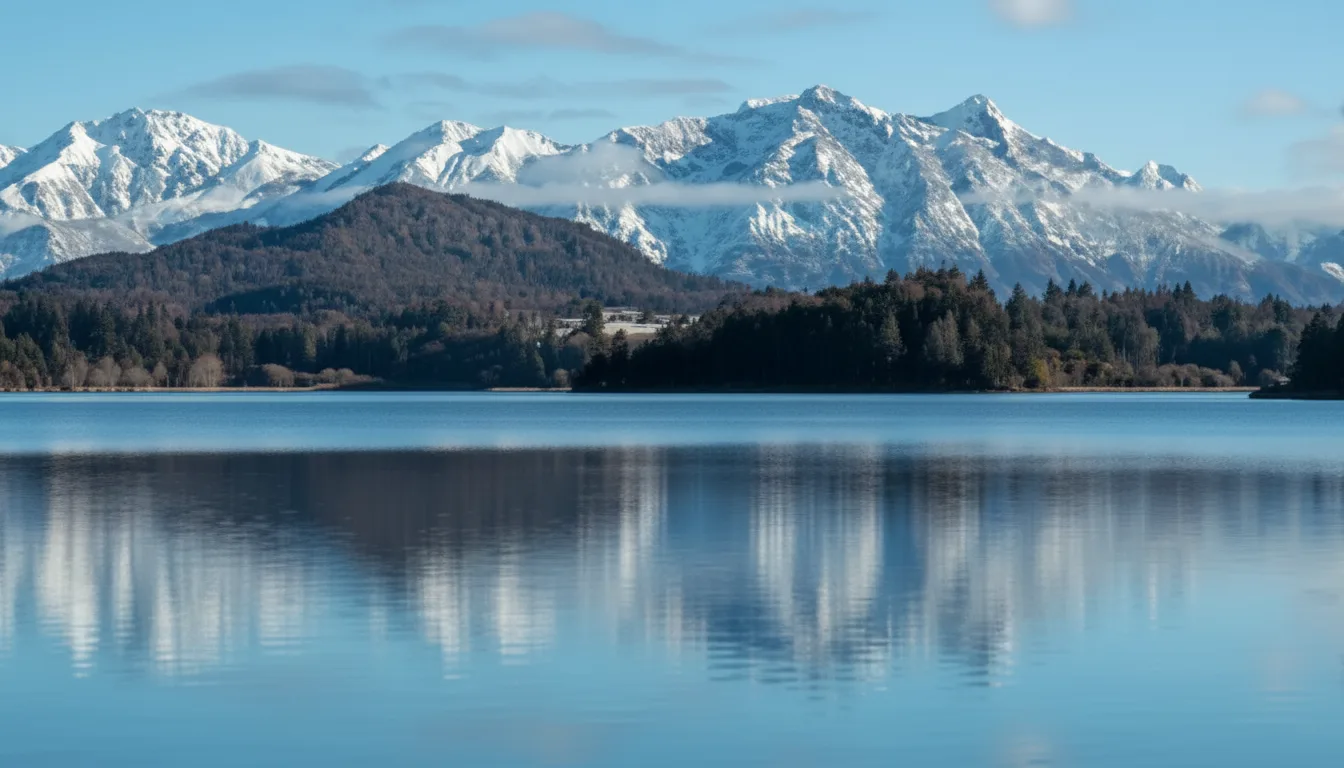 • 📸 Capture the glass-like reflections of the massive mountains on the still water surface. 🏔️