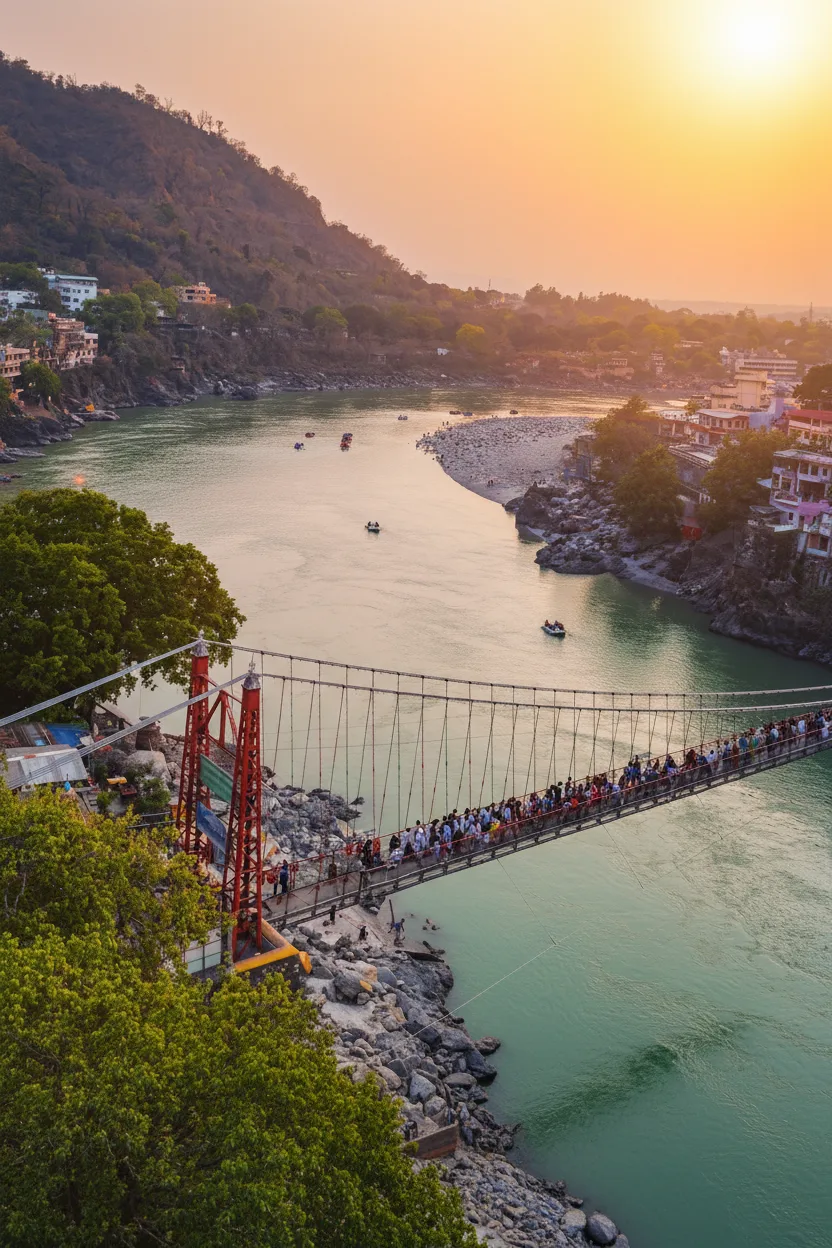 • 🕖 07:00 AM – Walk across 🌉 Laxman Jhula 🚶