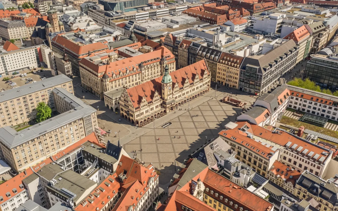Leipzig Market Square is the historic and cultural center of the city, surrounded by traditional buildings, cafés,