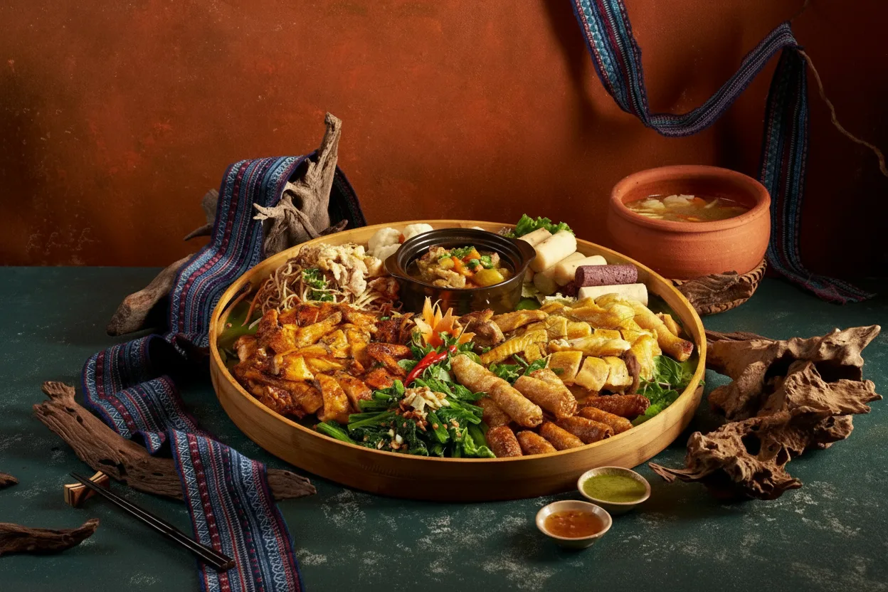 • 📜 Learn about regional 📖 dishes like “Com Lam” and hill chicken with Mac Khen 🍗