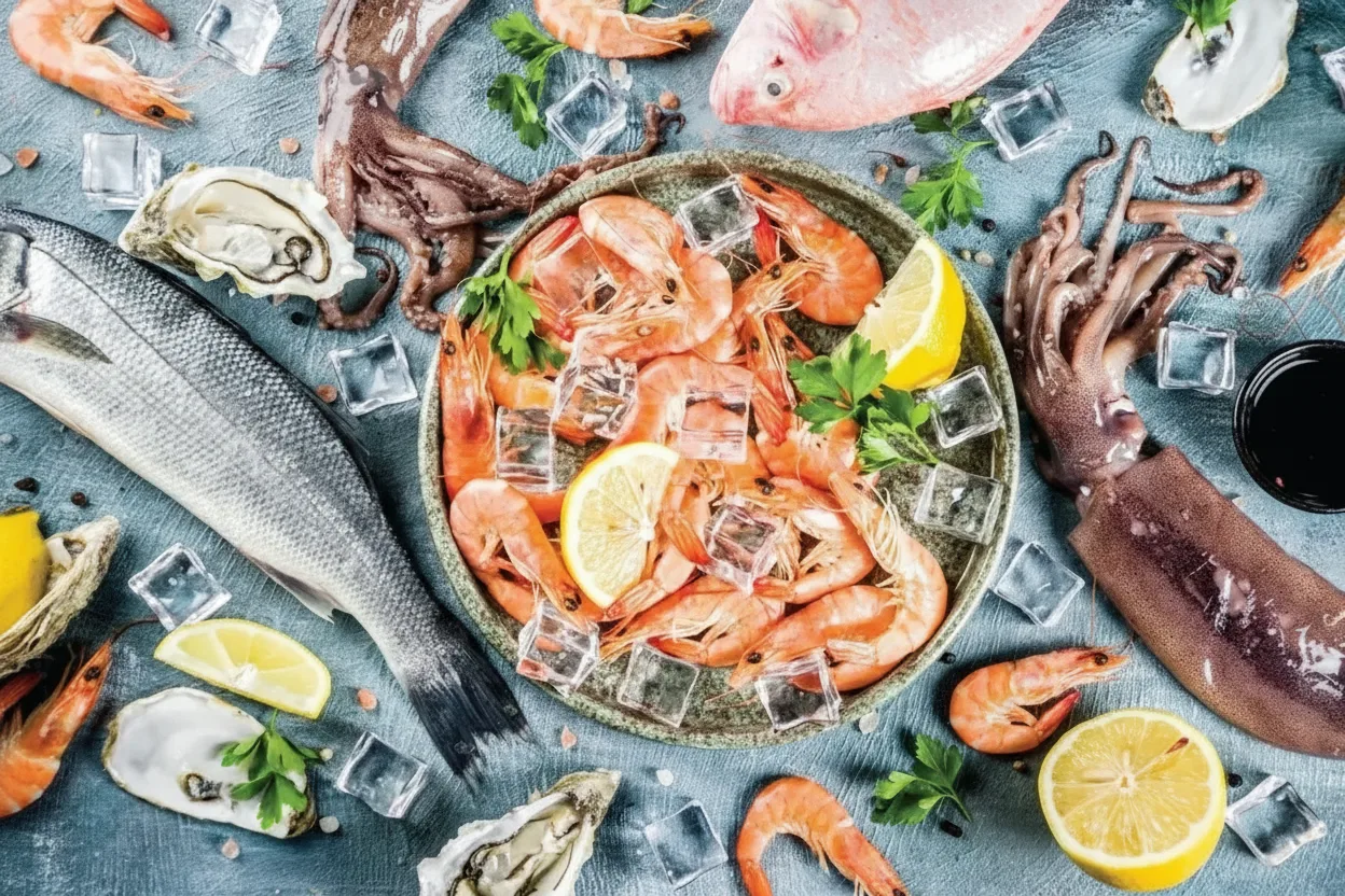 • 🦐 View the massive fresh seafood displays 🦀 featuring the morning’s best catch 🐟