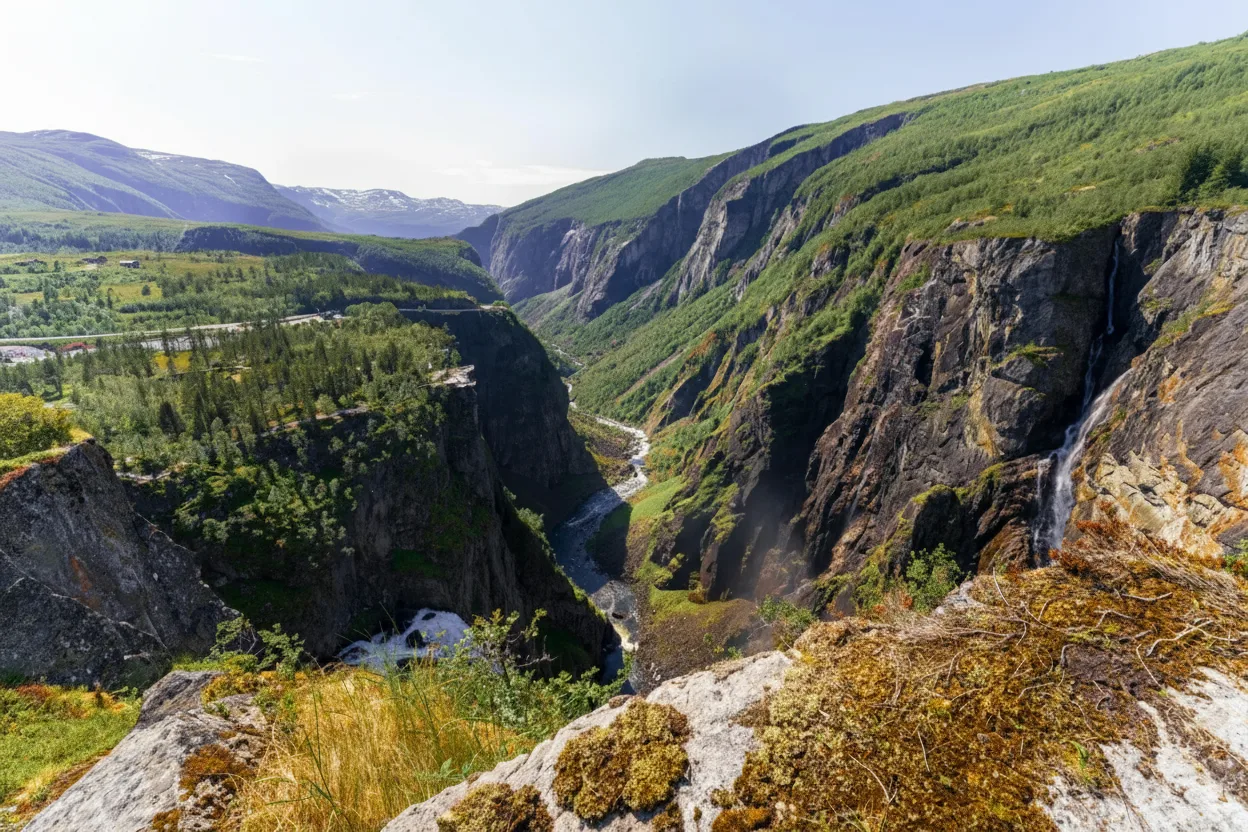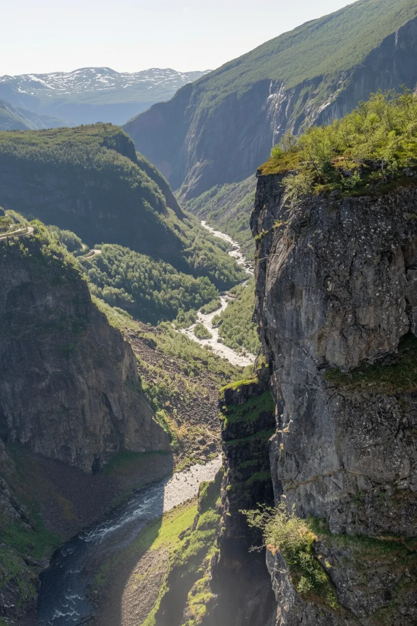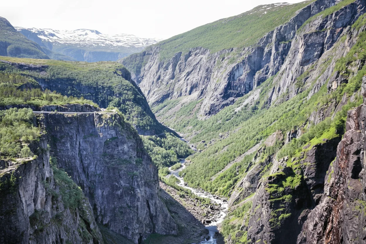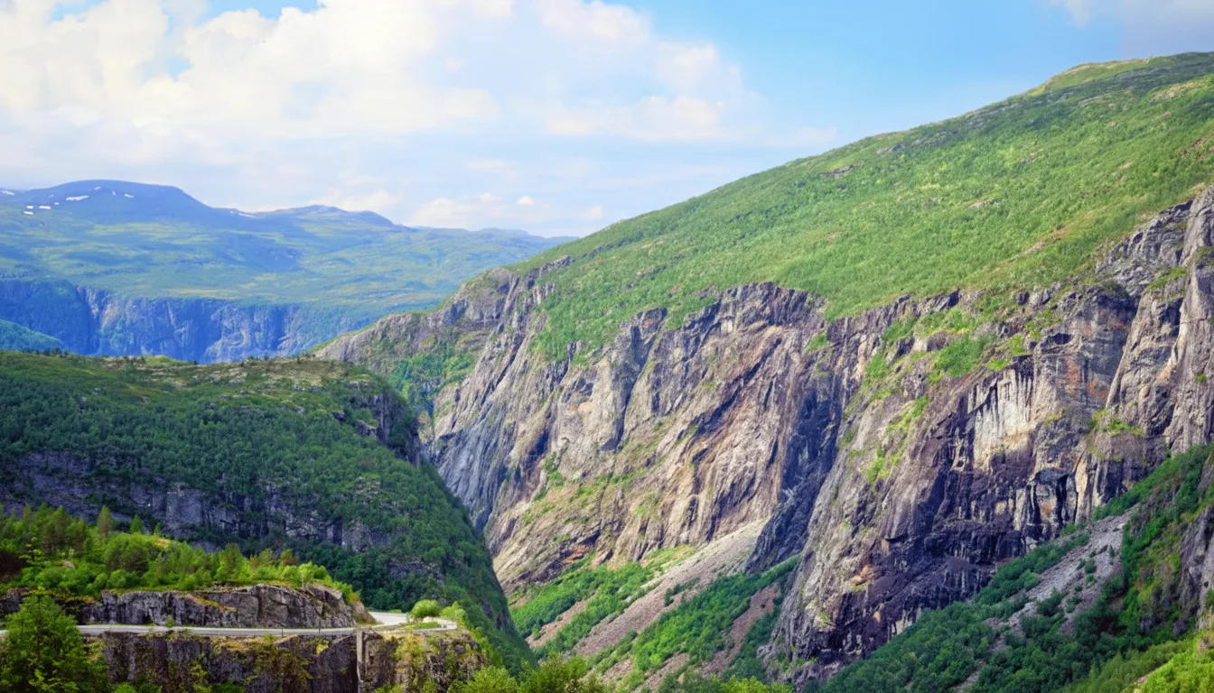Måbødalen Valley is a dramatic mountain valley leading from Eidfjord up to the Hardangervidda plateau. The valley is known for its steep cliffs, winding road, waterfalls, and powerful natural scenery. Driving through Måbødalen offers travelers a memorable journey through one of Norway’s most impressive landscapes. The contrast between narrow valley walls and open mountain views makes this route a highlight in the Hardanger region.