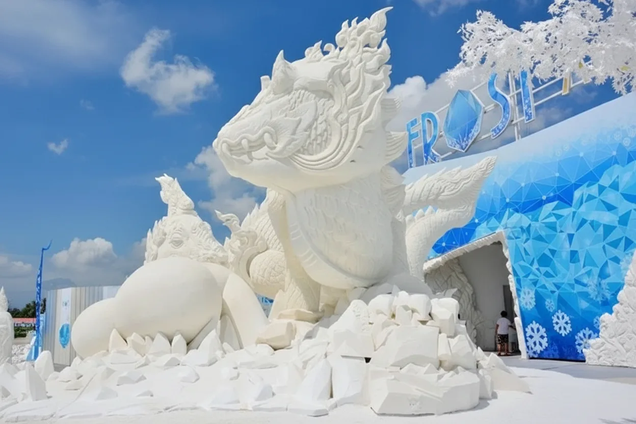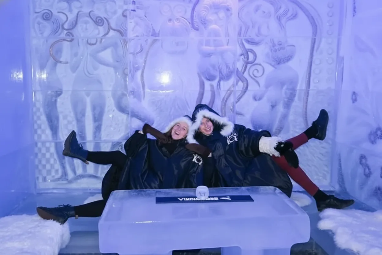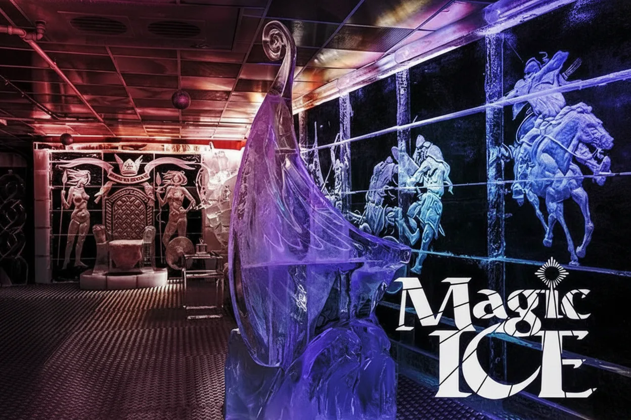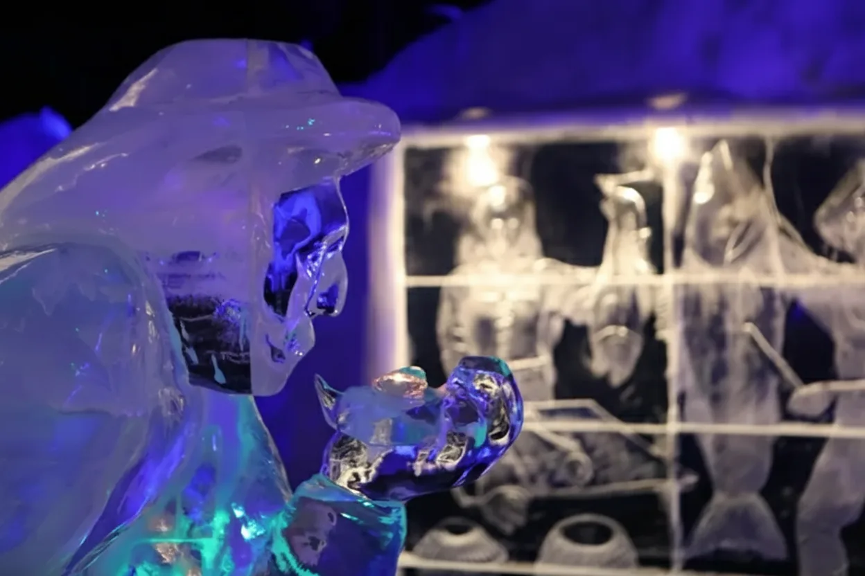 detailed ice sculptures inspired by Arctic life, Viking history, and the dramatic