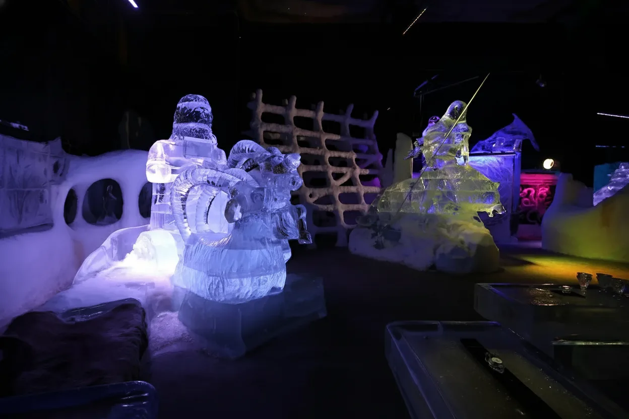 - 🪑 Sit on ice furniture 🧊 inside the glowing gallery 🌌