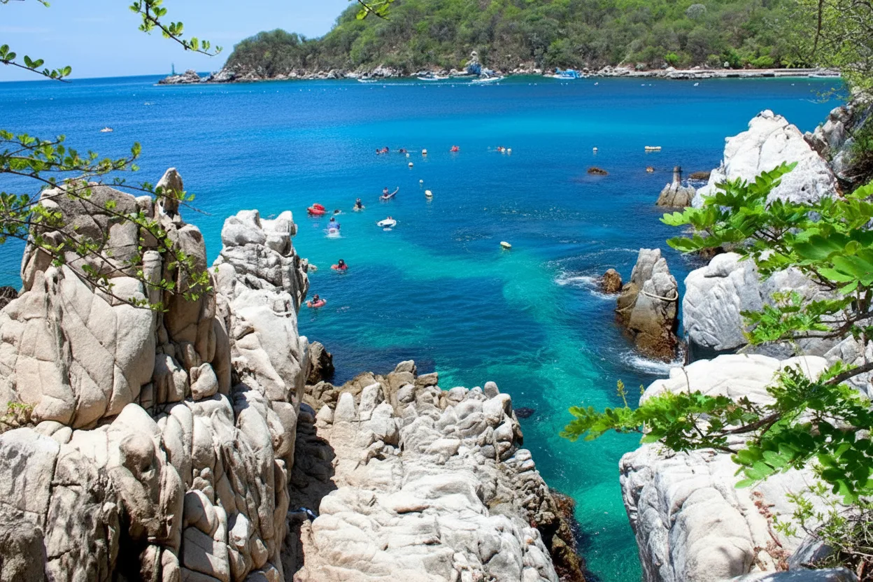 Maguey Bay, located in Huatulco, Oaxaca, Mexico, is a beautiful coastal destination