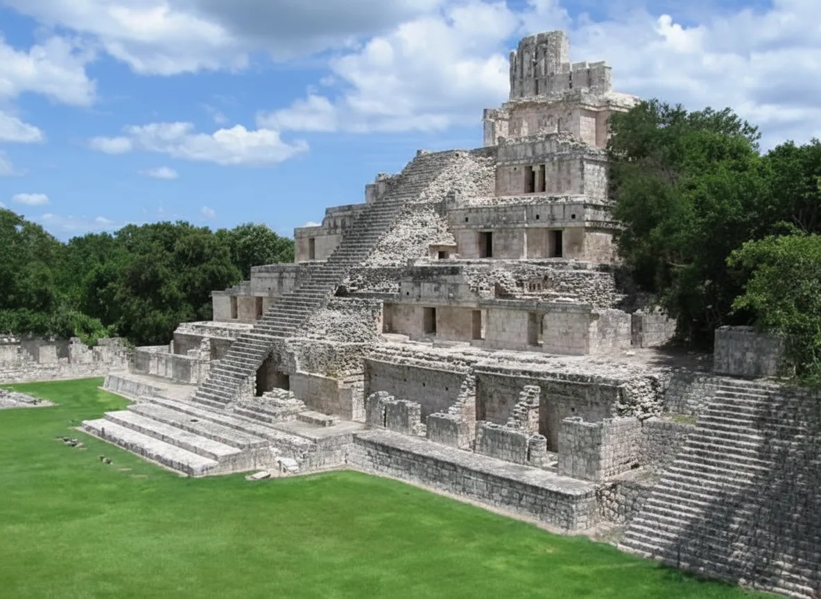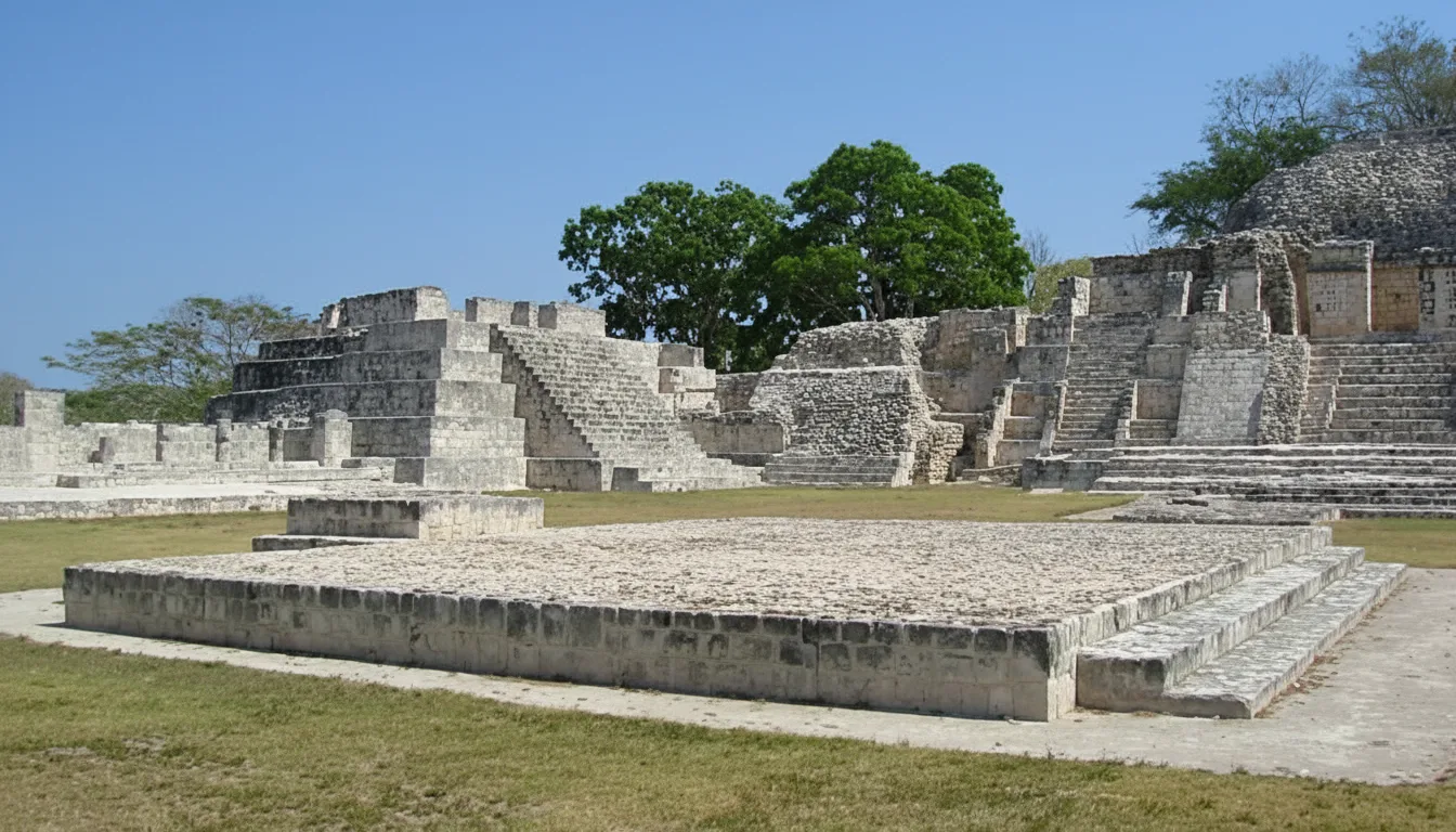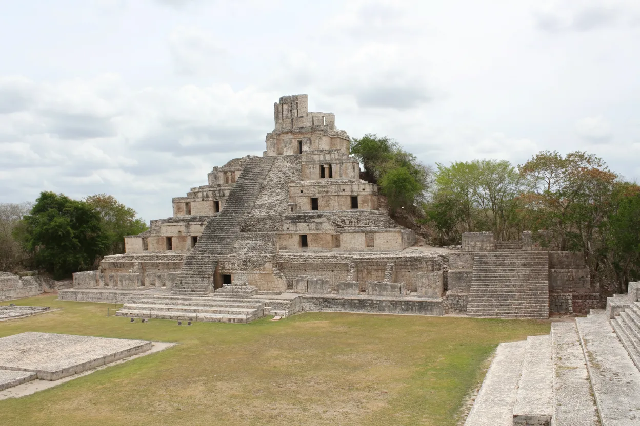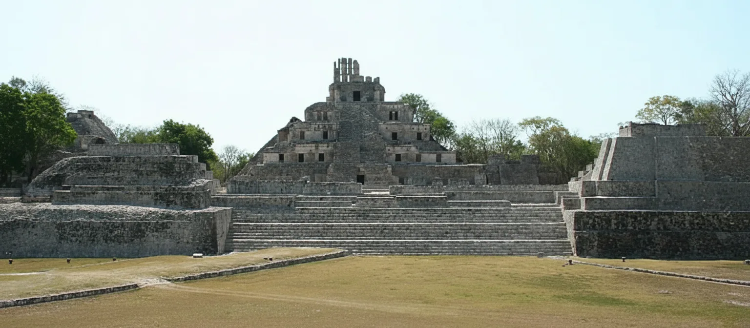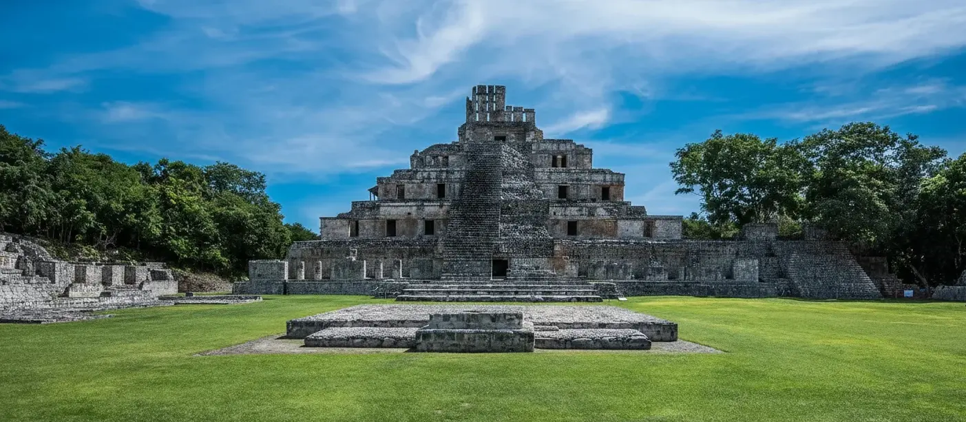 The Main Plaza of Edzná is a wide open ceremonial space surrounded by major structures of the ancient Maya city. This area functioned as the central gathering place for public ceremonies, events, and daily communal activities.