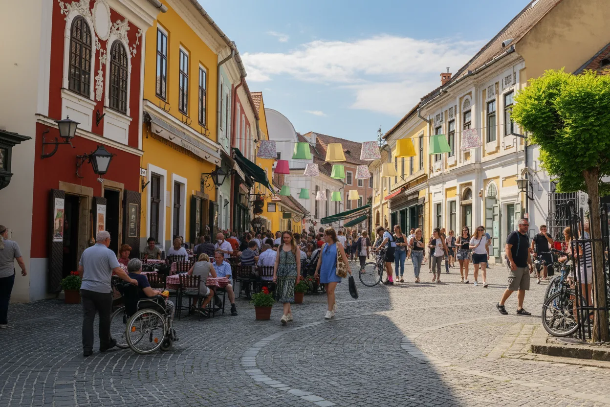 Main Square, known locally as Fő tér, is the lively heart of Szentendre Old Town in Hungary.