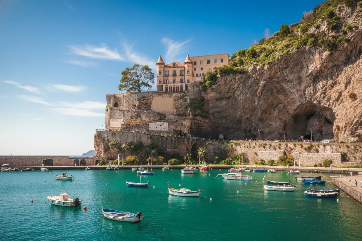 - From Amalfi 🏘️: 10-minute drive 🚗 or bus ride 🚌 east ➡️ along the coastal road 🛣️⏱️💨