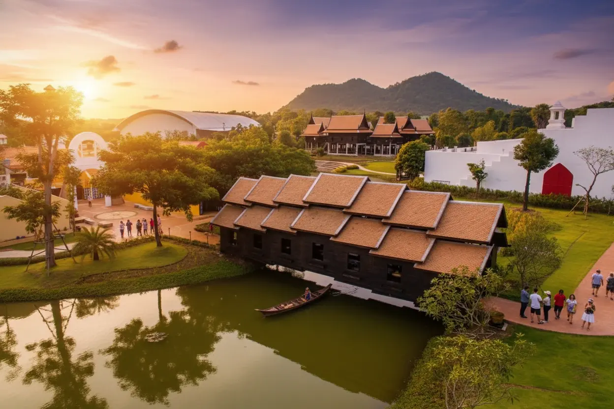 • Historical Village 🏘️ explore life-size replicas 🏰 of Thai houses 🏠, temples 🛕, and shops 🛒👀