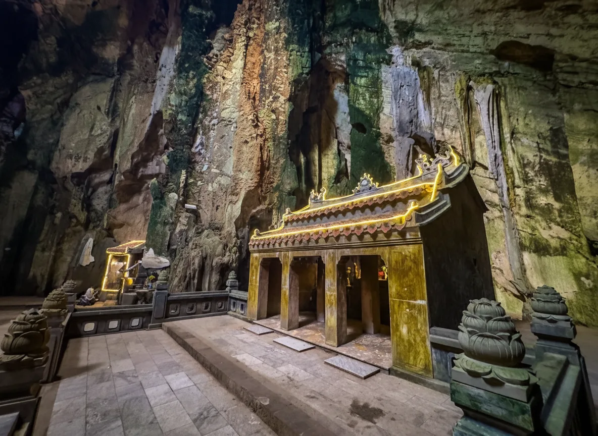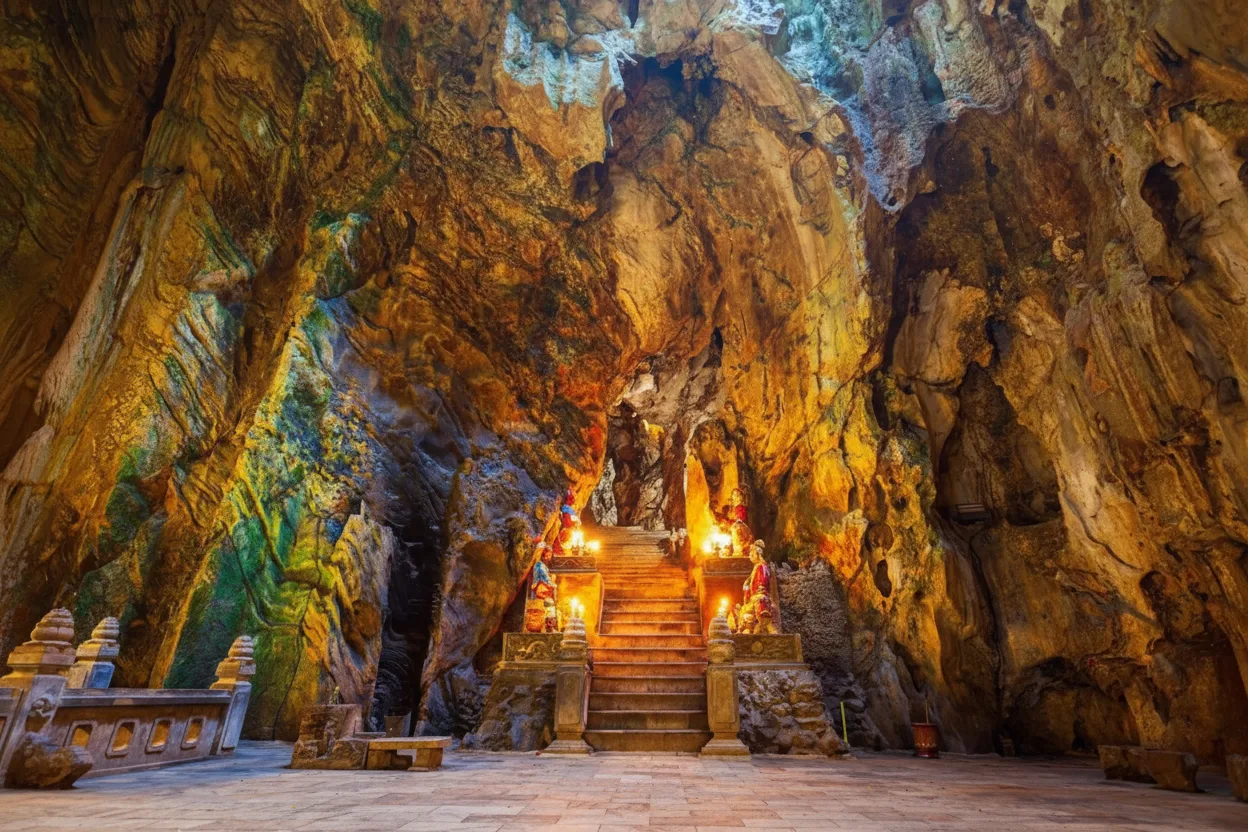 Marble Mountains, locally known as Ngũ Hành Sơn, is a famous natural and cultural landmark near Da Nang, Vietnam. The area consists of five limestone hills named after the five elements, each offering caves, temples, and scenic viewpoints. Walking through Marble Mountains allows travelers to explore stone stairways, hidden caves, and peaceful pagodas built into the rock. The mix of nature, spirituality, and coastal views makes this place unique and memorable. For travelers, Marble Mountains is a must-visit destination that combines history, religion, and panoramic scenery just a short drive from Da Nang city.