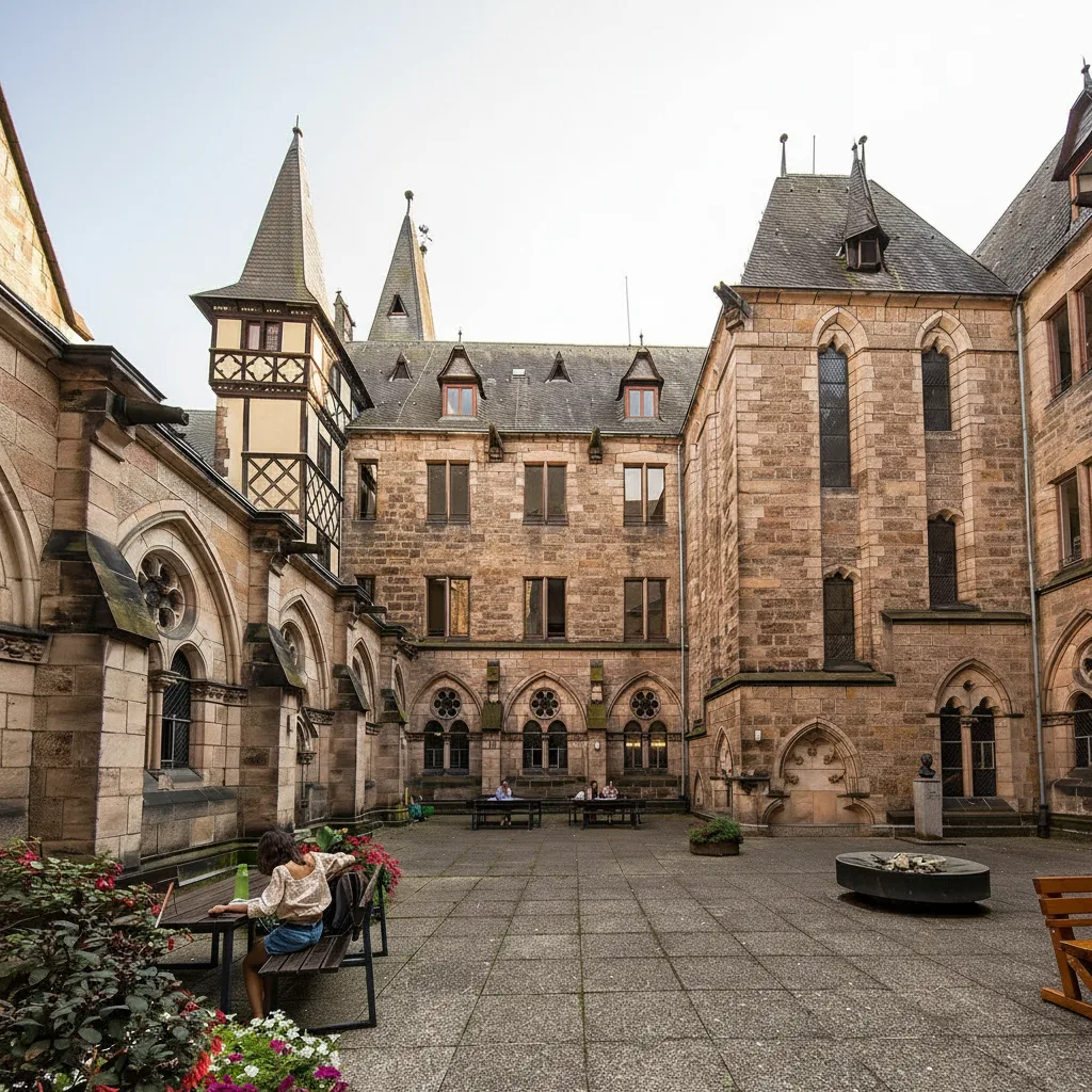 • 🏰 Explore the large courtyard 🧱 and gothic architecture ⛪