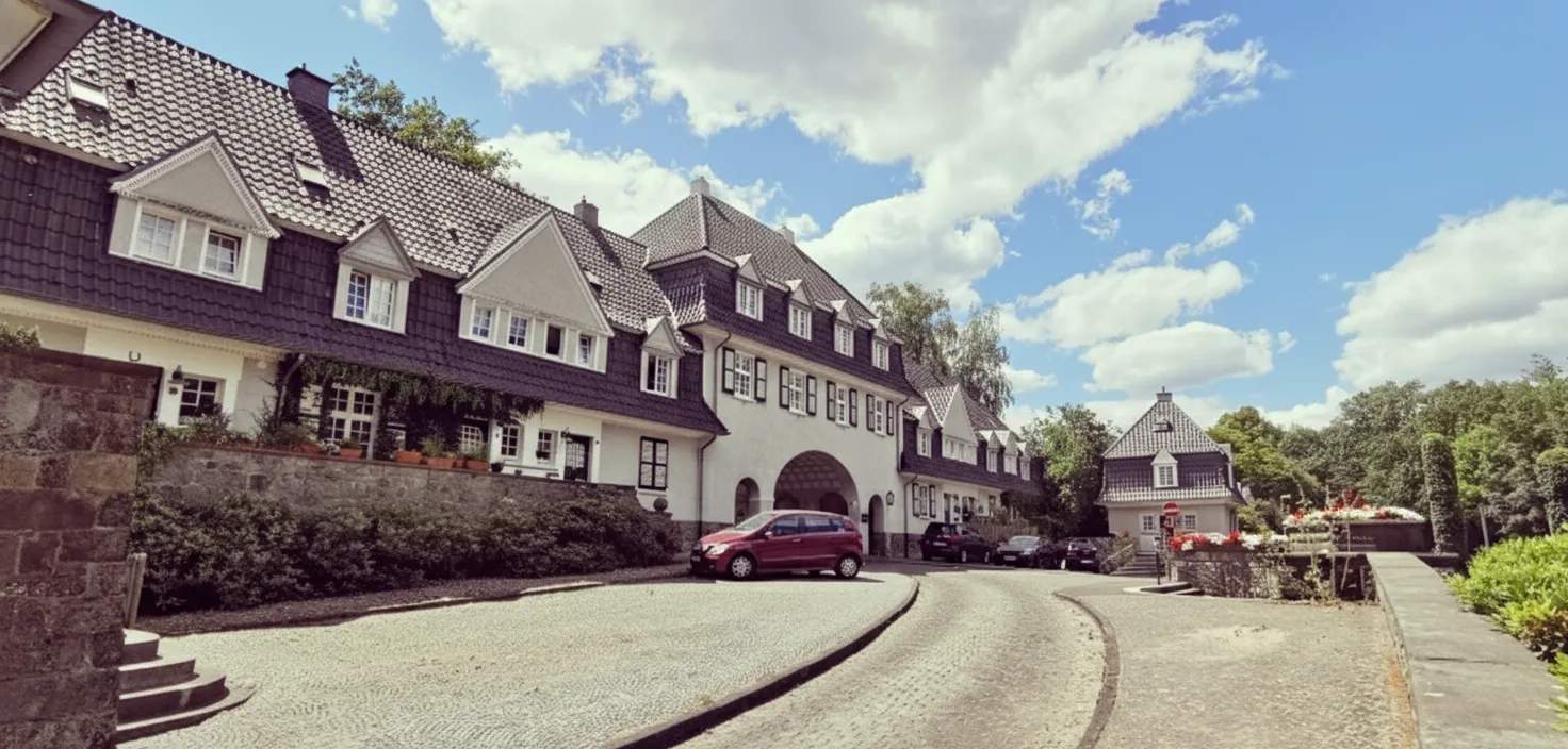 Margarethenhöhe is a charming garden suburb in Essen, famous for its well-preserved early 20th-century architecture. Designed as a model housing project, the area features cobbled streets, traditional houses, small squares, and a calm village atmosphere within the city.