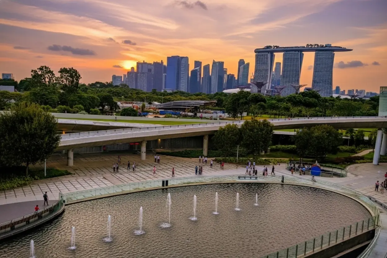 • 4:30 PM – Arrive 🧭 at Marina Barrage 🌳💨