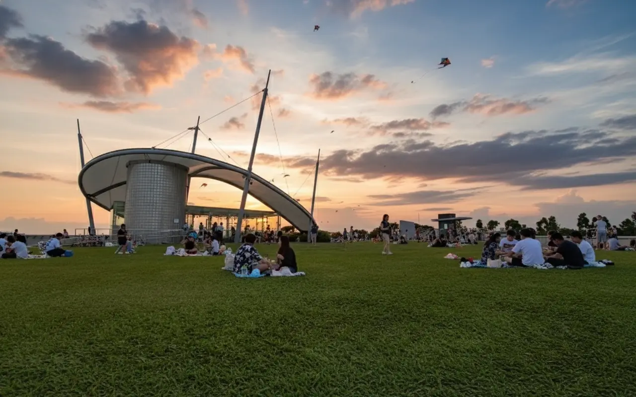 Marina Barrage is one of Singapore’s most innovative engineering landmarks and a popular recreational spot for locals and tourists alike. It serves as a dam built across the Marina Channel to help with water supply, flood control, and recreation. Beyond its practical purpose, the Barrage offers panoramic views of Marina Bay, open green rooftop lawns perfect for picnics, and kite-flying experiences against the city skyline