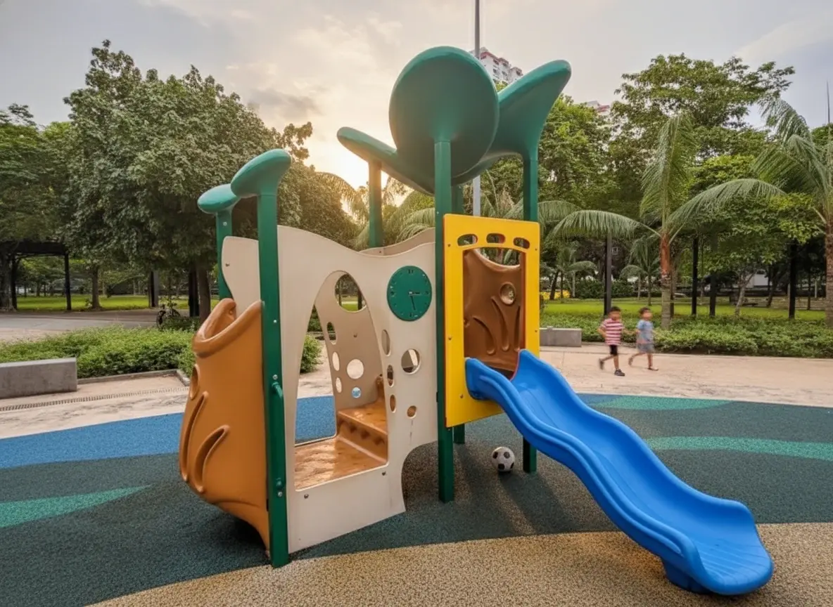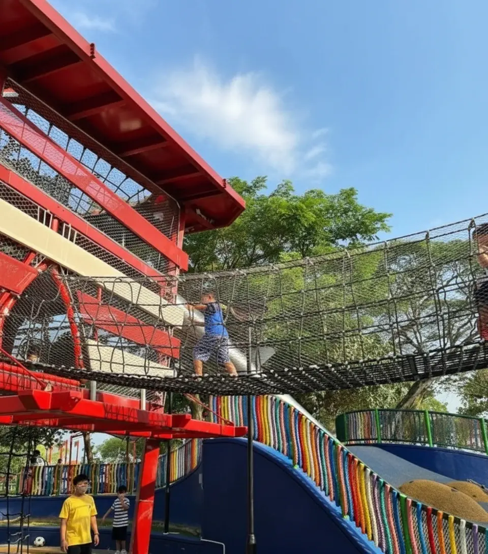 • Let kids explore 🤸‍♂️ giant slides 🎢, climbing nets 🧗, and towers 🏰 designed for all ages 🎉👧👦