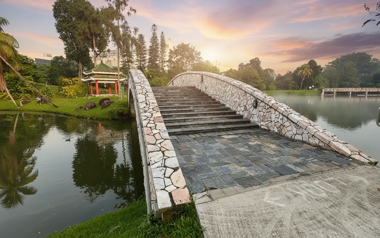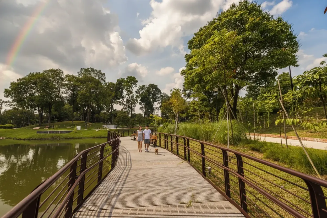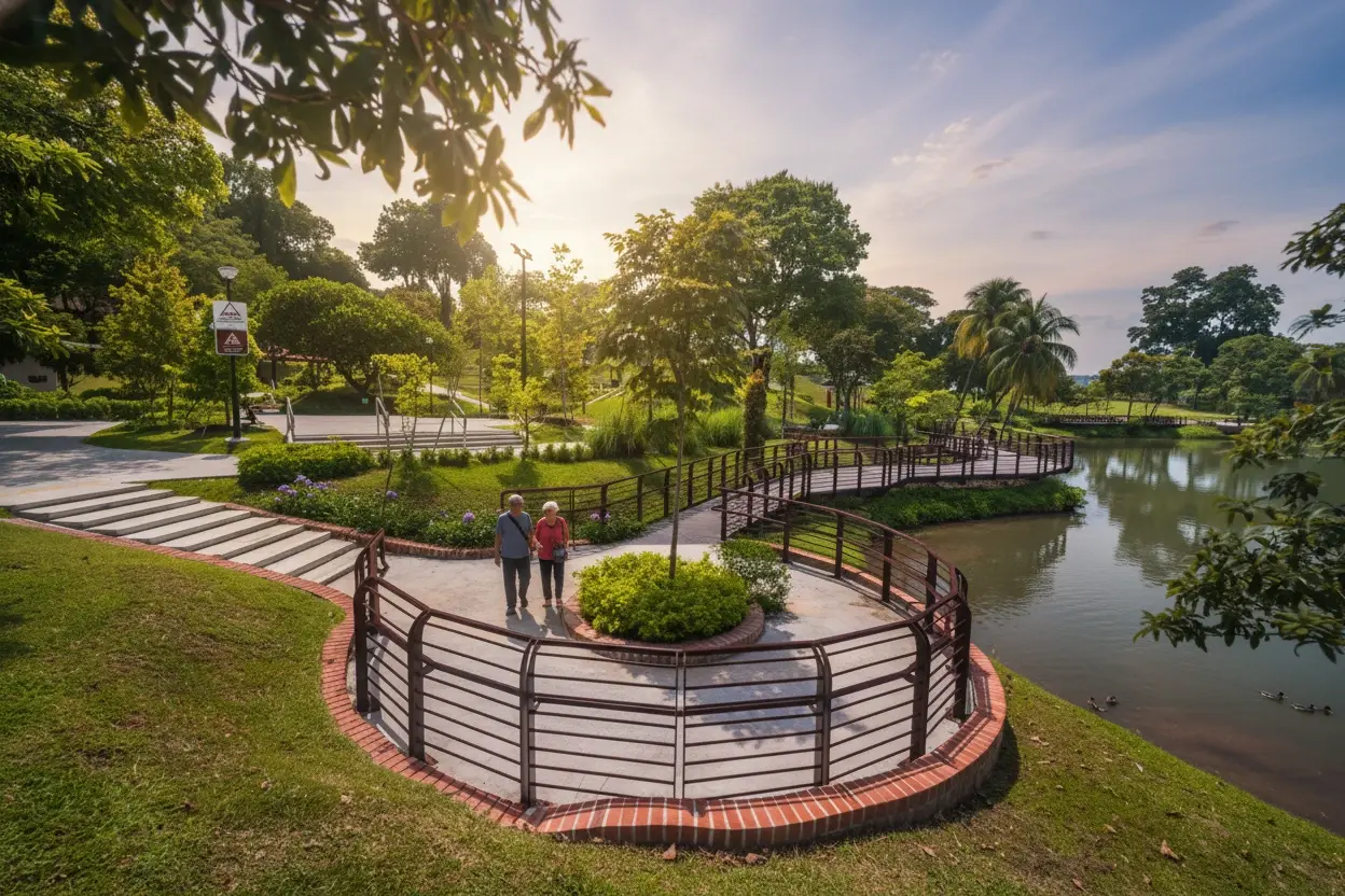 Marsiling Park is a peaceful green space in northern Singapore, designed for quiet walks,