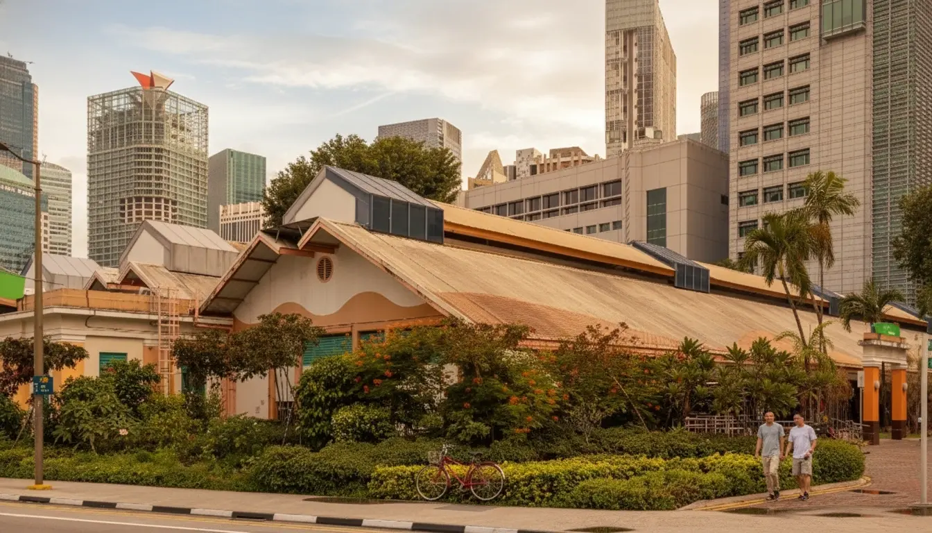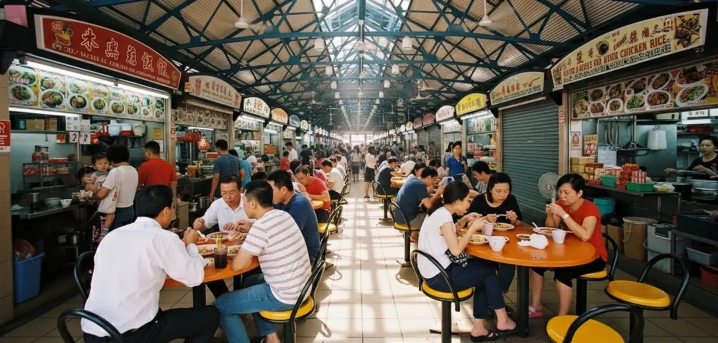 • Experience authentic Singaporean hawker culture 🧑‍🤝‍🧑 in a vibrant setting 🎉💚