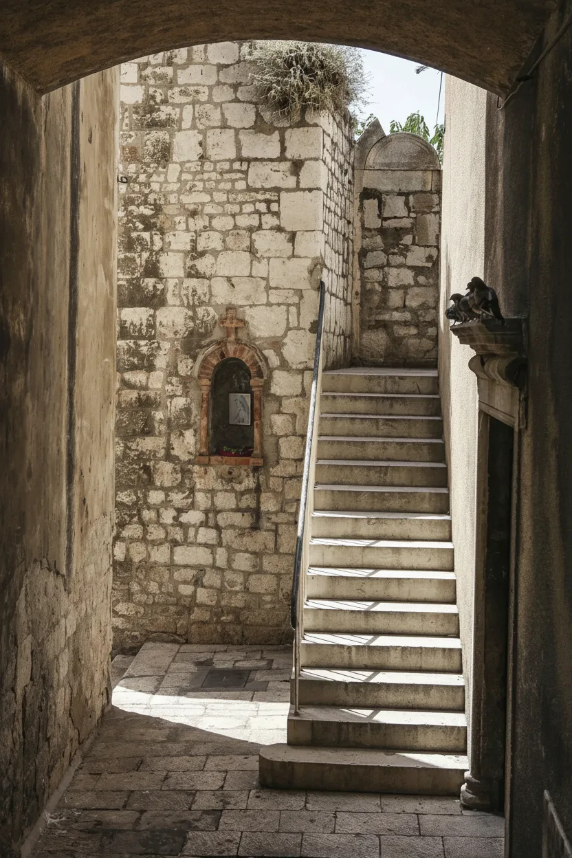 • 📸 Capture the play of light and shadow in the narrowest street in the city, located near the Church of St. John 🎞️