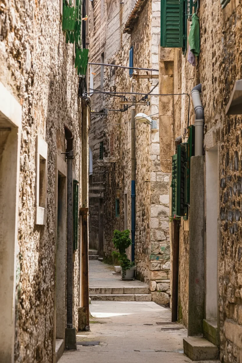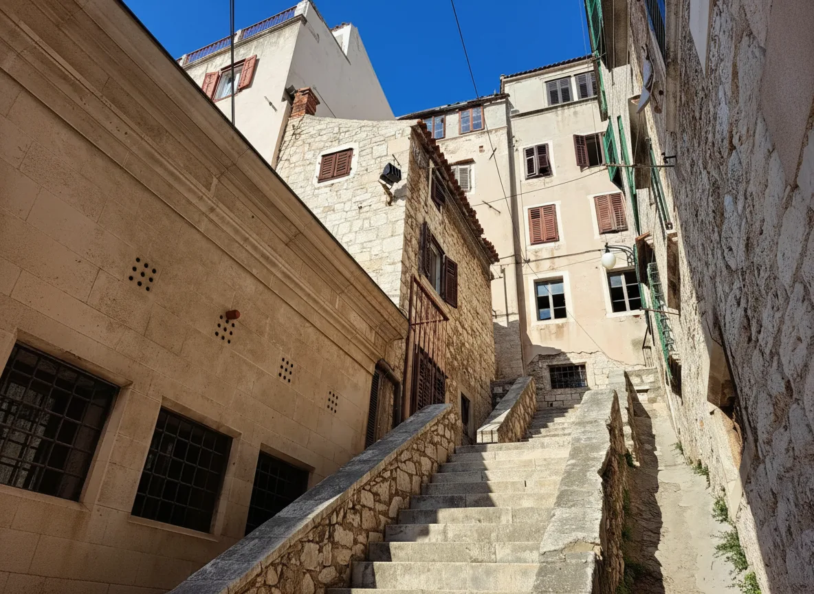 The medieval alleys of Šibenik form a network of narrow stone pathways that wind through the old town. These alleys were shaped over centuries and reflect the city’s medieval layout, connecting homes, squares, churches, and fortresses. Walking through these stone alleys offers an authentic experience of Šibenik’s past. The quiet passages, worn steps, and historic walls create a timeless atmosphere ideal for slow exploration.