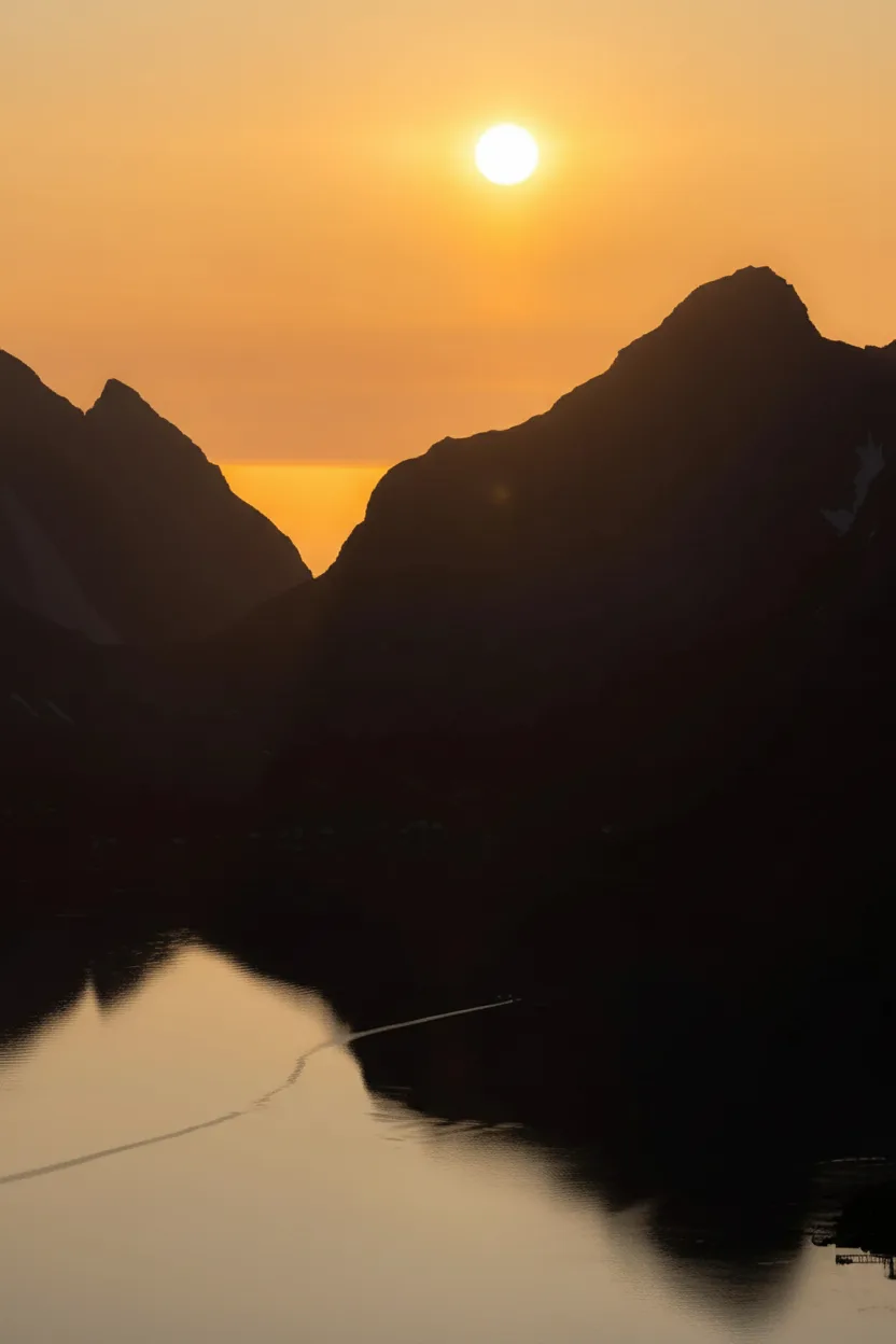 • ☀️ Watch the glowing midnight sun 🌅 as it hovers over the fjords. 🌊