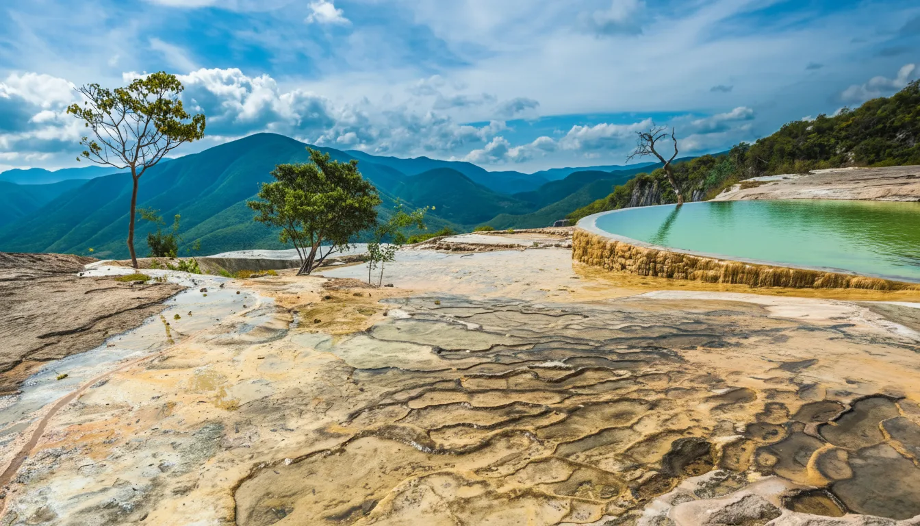 Mineral Pools are naturally formed basins created by mineral-rich water flowing and settling across stone surfaces. Over time, these deposits shape smooth pool edges and layered rock formations that resemble natural infinity pools. The pools reflect the surrounding sky and landscape, creating a peaceful visual experience. Visitors can walk around the pools, observe mineral textures, and enjoy wide open views of the surrounding valleys. For travelers, Mineral Pools offer a calm and scenic stop that combines natural beauty with unique geological features.