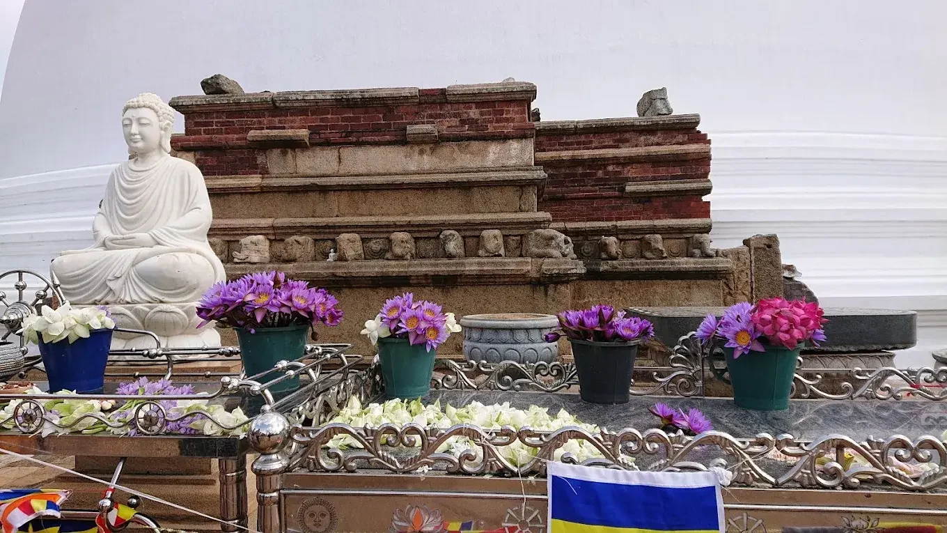 • Main Stupa ⚪🙏: The white dome 🤍 built by King Dutugemunu 👑 — a symbol of peace 🕊️ and devotion ✨