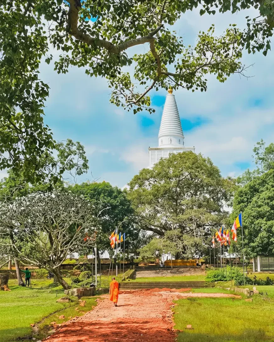 • 5:00 PM – Arrive at Mirisawetiya 🕌 and walk around the stupa ⚪🚶‍♀️