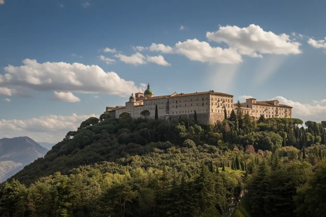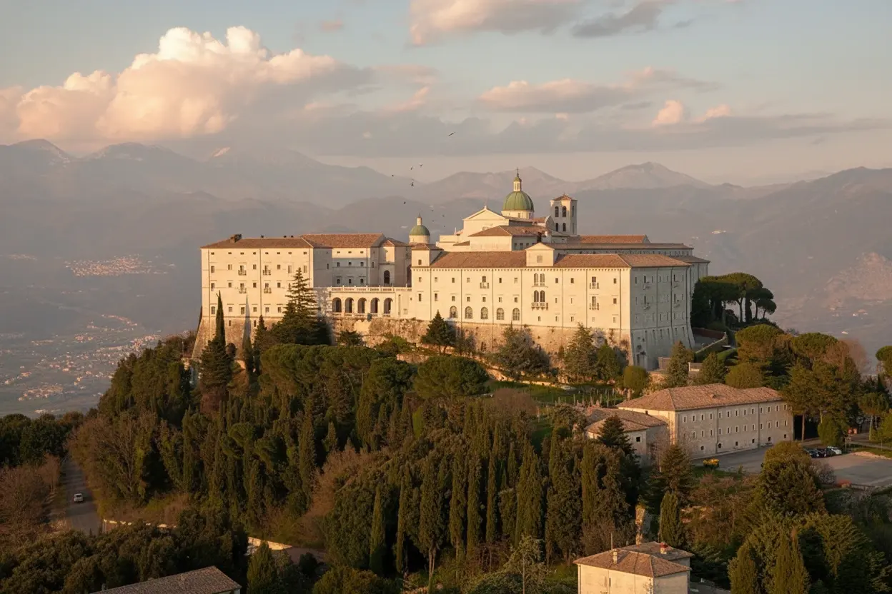 - 9:00 AM – Arrive 🧭 at Montecassino Abbey 🕌💨