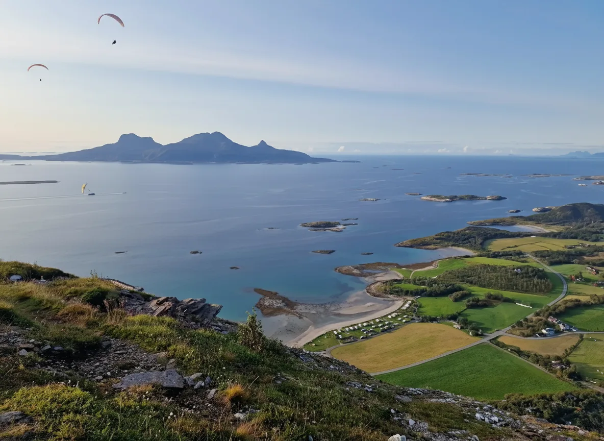 • 🔭 Enjoy panoramic views of Bodø and the sea 🌊 from the stunning natural overlooks on the ridge. 🏔️