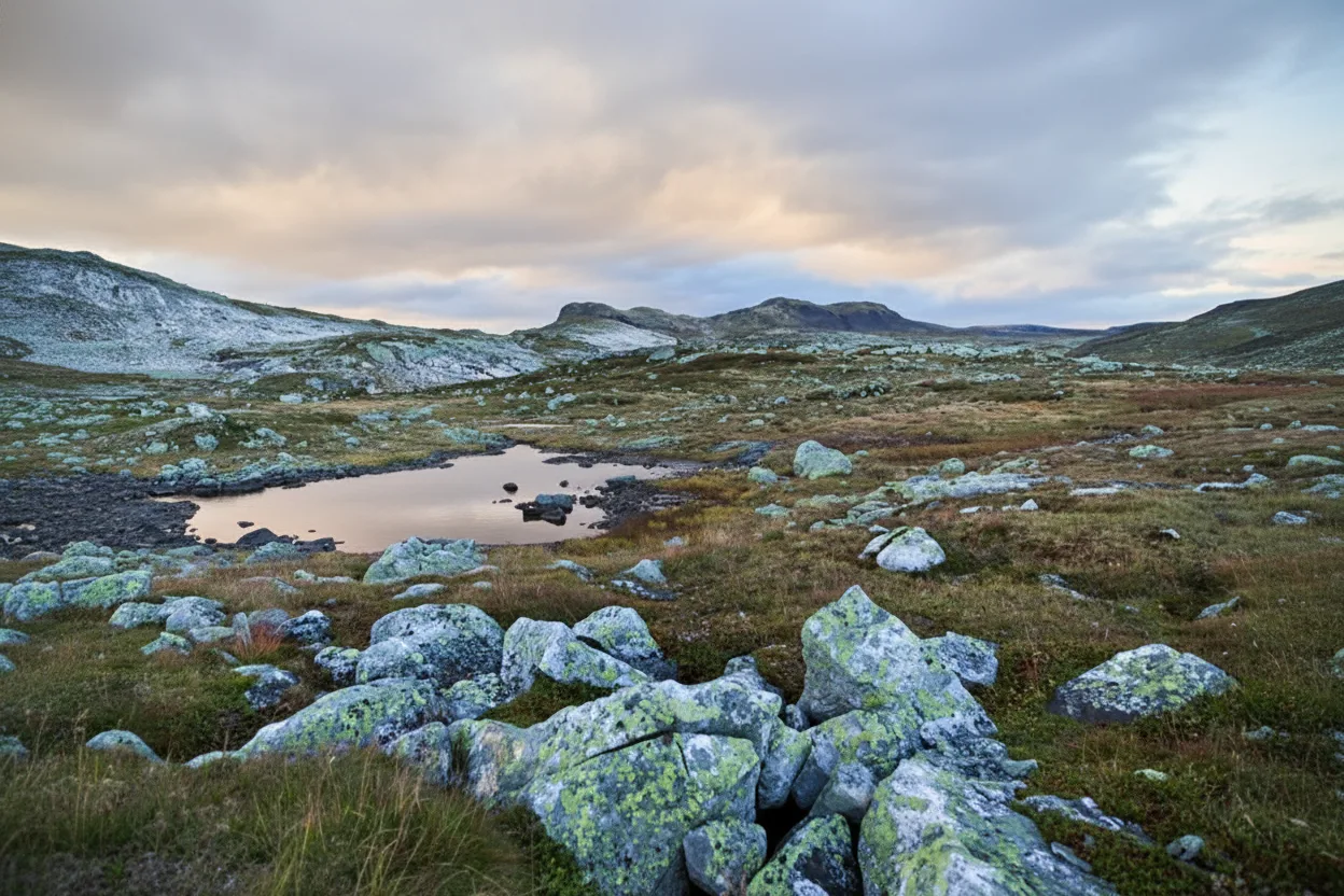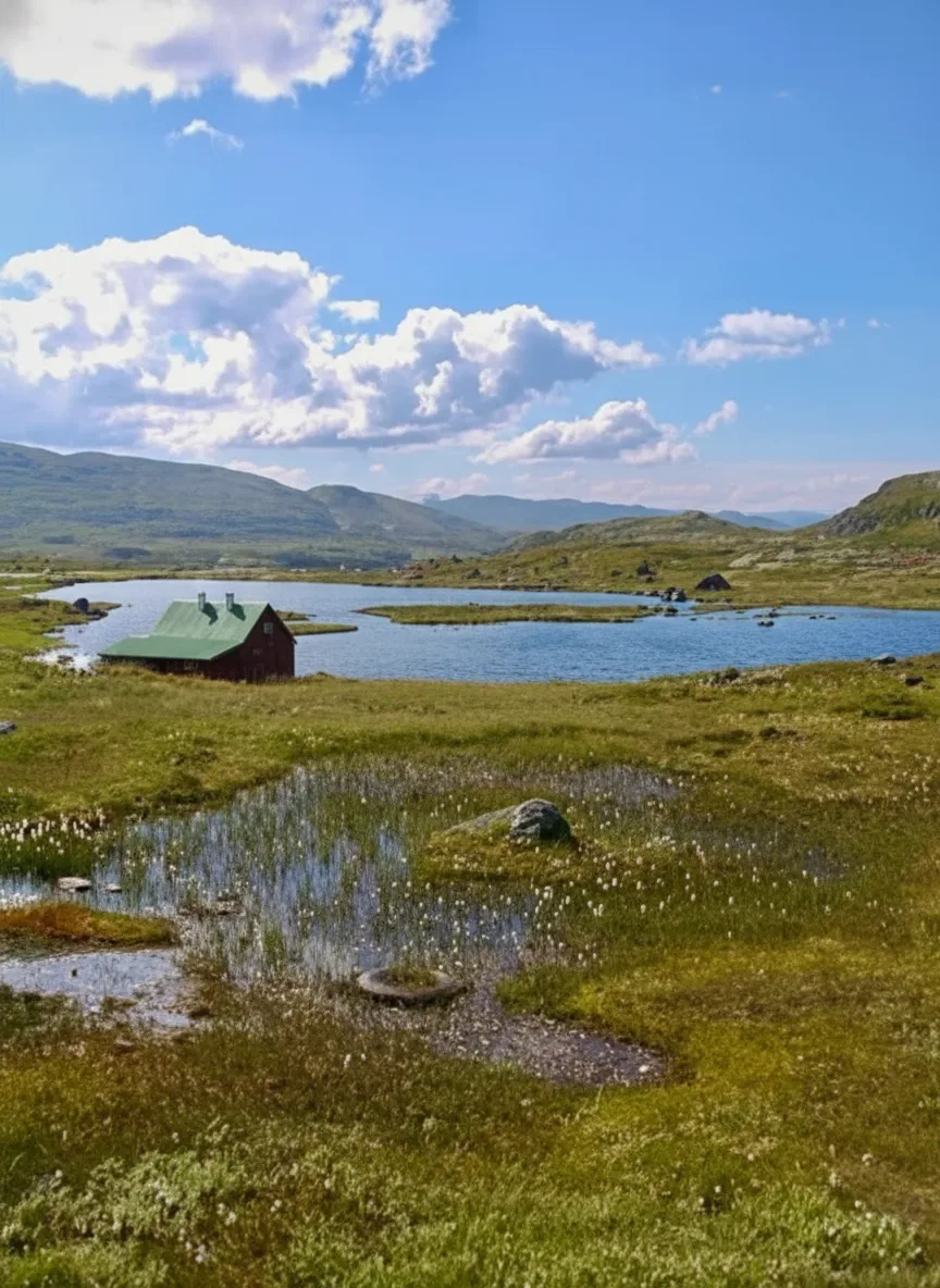 Mountain lakes scattered across the Hardangervidda Plateau create some of the calmest and most peaceful landscapes in Norway. These clear waters reflect wide skies, surrounding hills, and changing weather, offering quiet moments far from busy travel routes