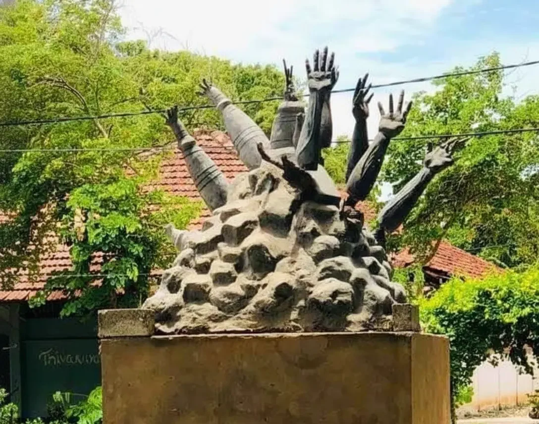 📌Mullivaikkal Memorial, Mullivaikkal, Mullaitivu District, Sri Lanka👉View on Google MapsSituated about 20 km southeast of Mullaitivu town, the site is along the coastal road leading toward Nandikadal Lagoon.