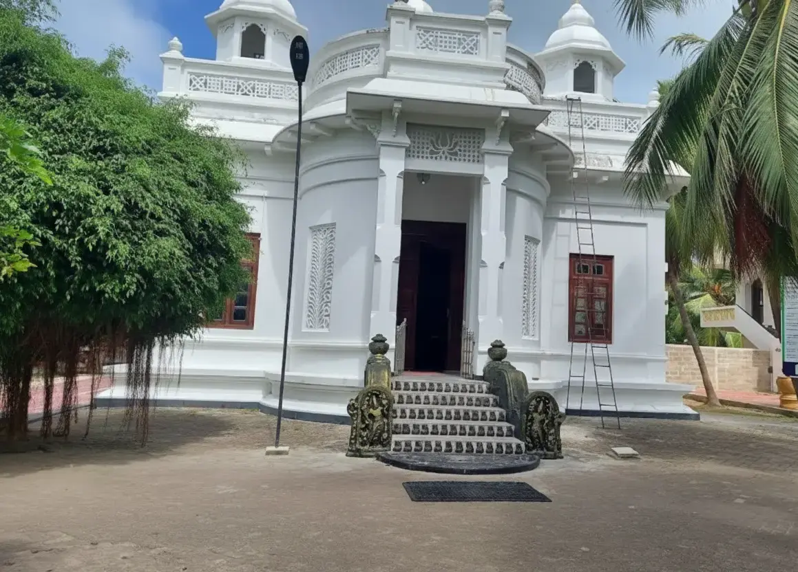 The temple is located about 30 km from Jaffna town, accessible by road and ferry via Kurikadduwan Jetty.
