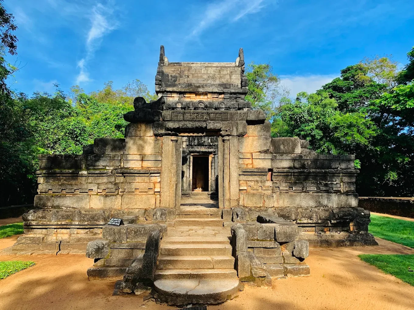 Nalanda Gedige, near Matale, is a fascinating stone temple blending Buddhist and Hindu architecture. Built over 1,000 years ago, this small yet unique site stands in peaceful surroundings, symbolizing unity between two faiths.