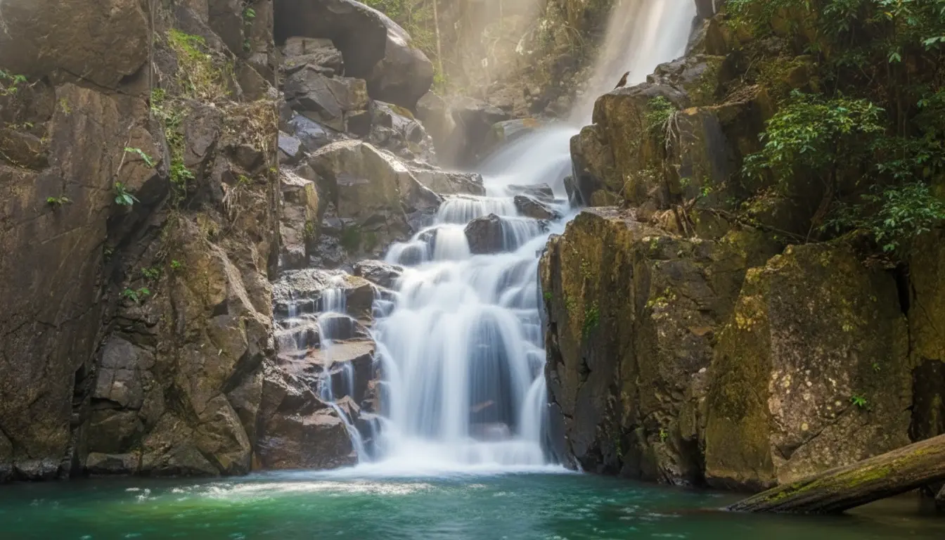 • 8:30 AM – Depart 🚗 from Chanthaburi town 🏘️ to Nam Tok Khlung 🏞️💨