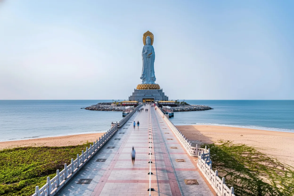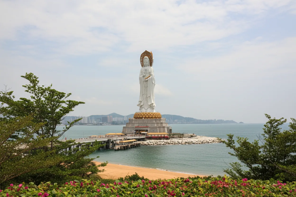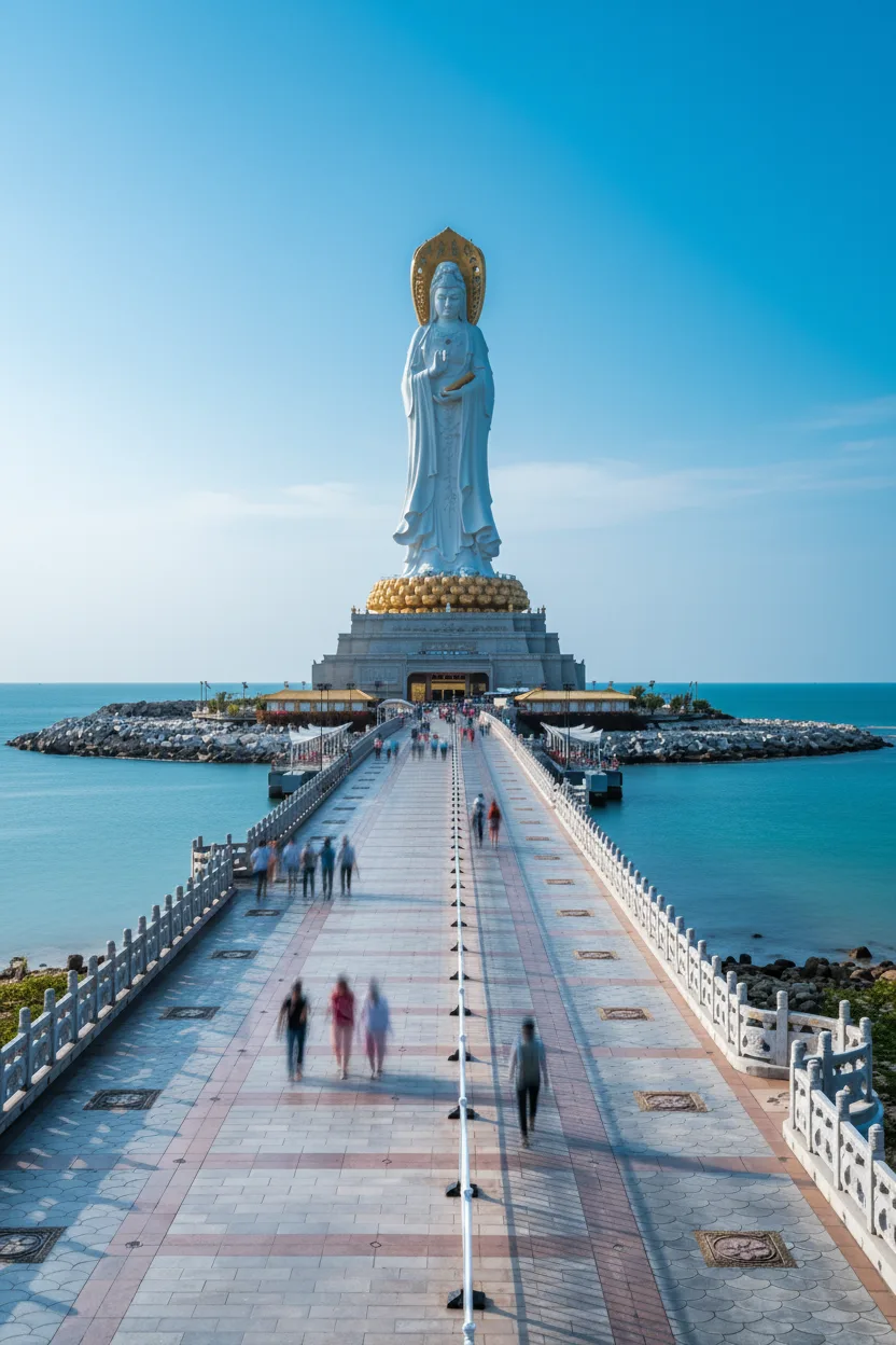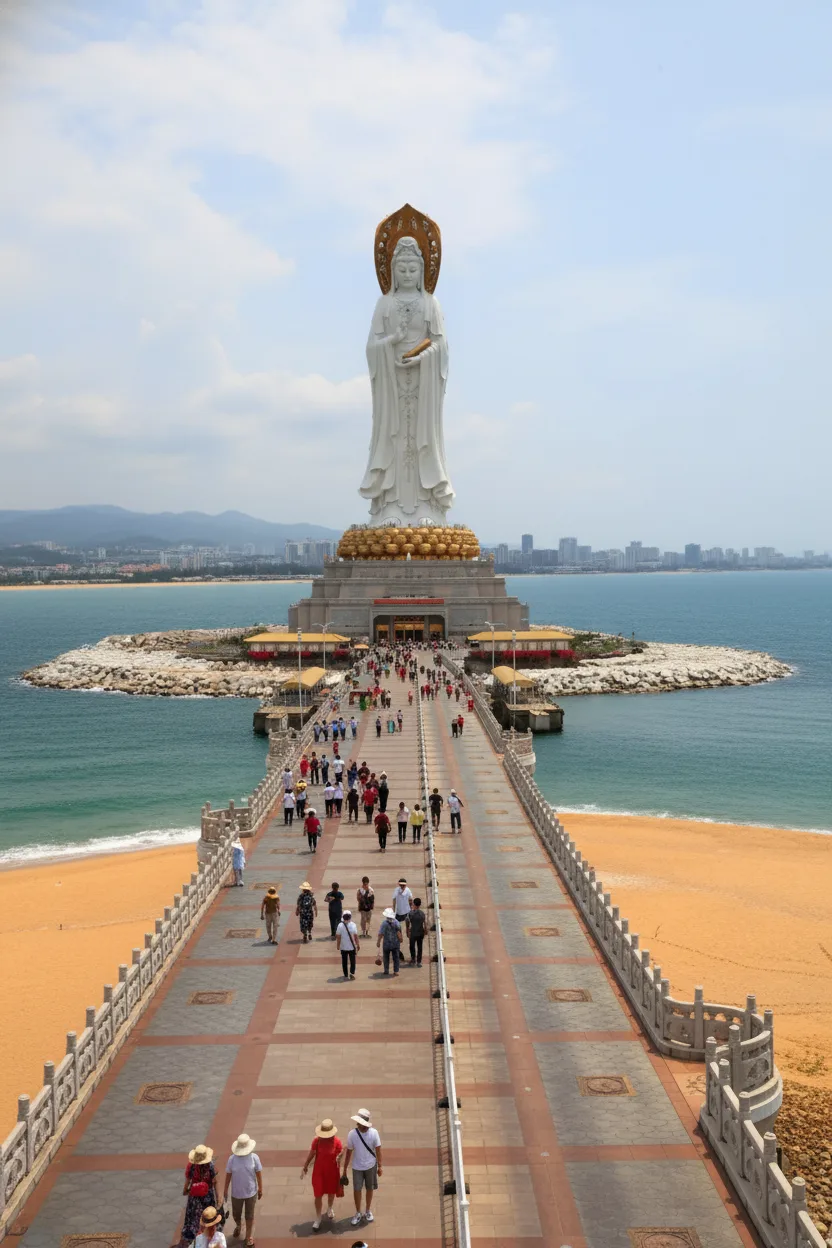 • 🗽 Visit the towering Nanshan Guanyin 🌊 Statue standing majestically over the ocean ⚓