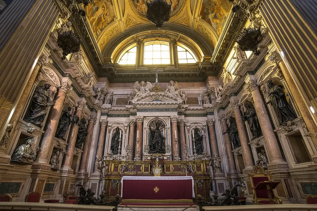 - Gothic Nave 👑 admire the high vaulted ceilings ⏫, marble floors 🧱, and golden altars 💛✨