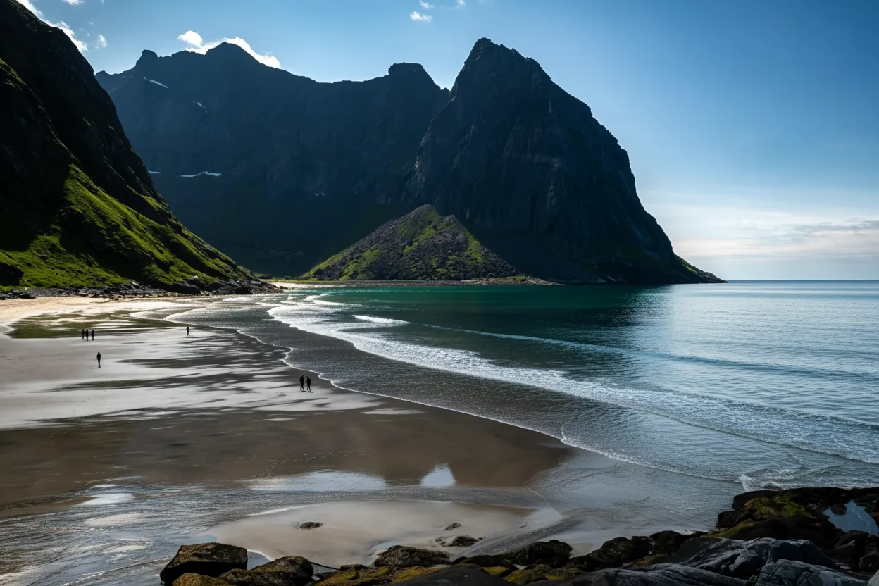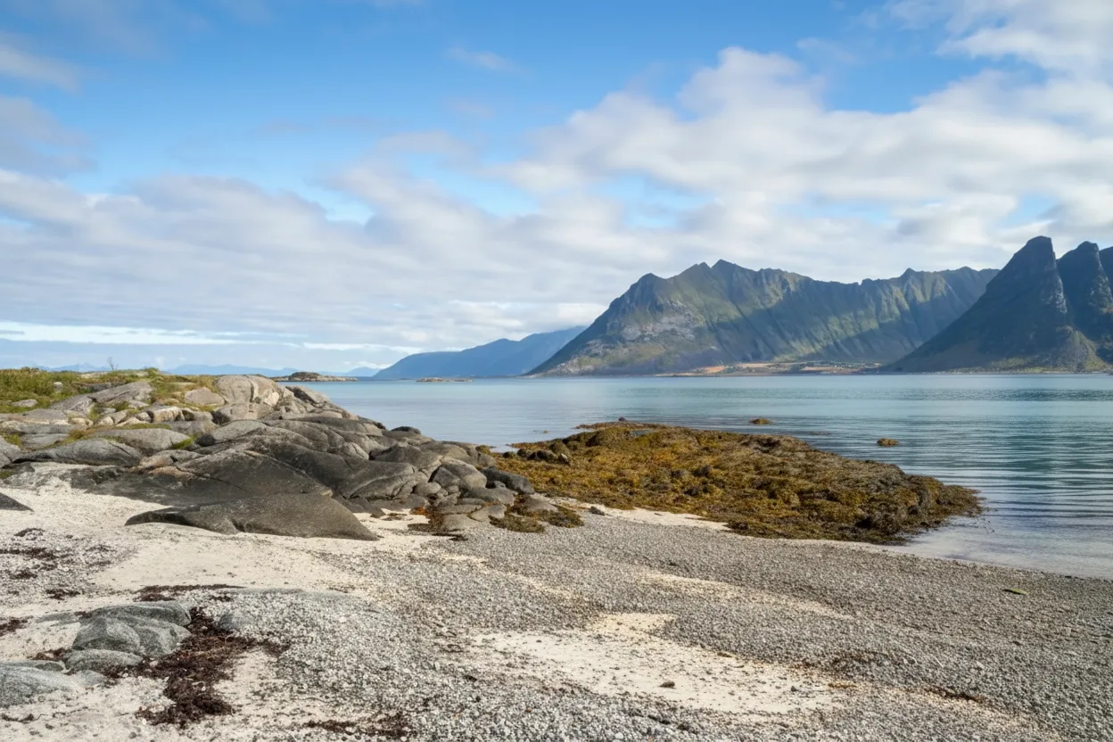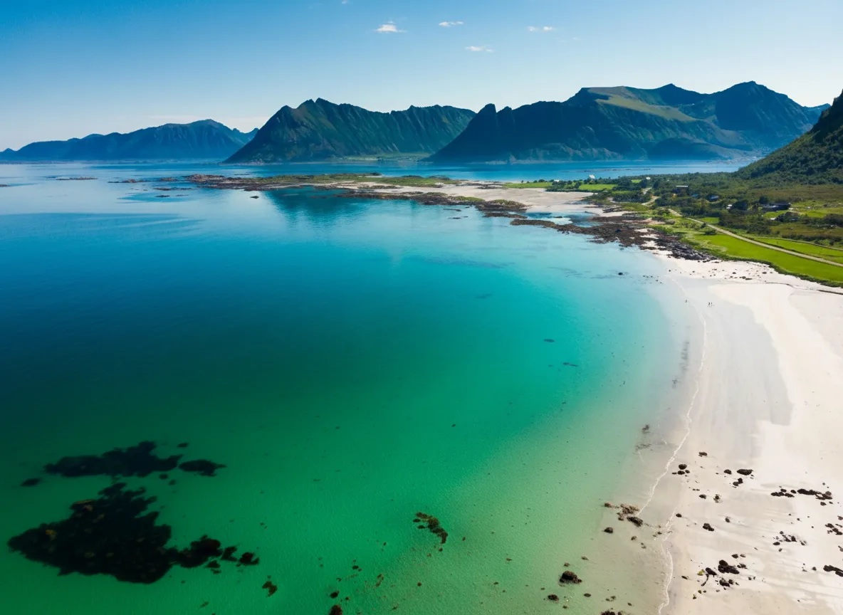 Several beautiful beaches are located a short drive from Svolvær, offering visitors the chance to experience the dramatic coastal scenery of the Lofoten Islands. These beaches feature white sand, turquoise Arctic waters, and surrounding mountain landscapes that create some of the most stunning natural views in northern Norway. Although the water is cold year-round, travelers often visit these beaches for photography, peaceful walks, and enjoying the unique Arctic coastal environment.