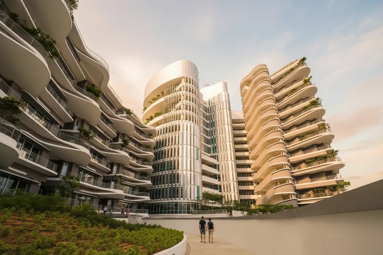 located atop the modern hospital complex in Jurong East. Designed as a healing sanctuary, the